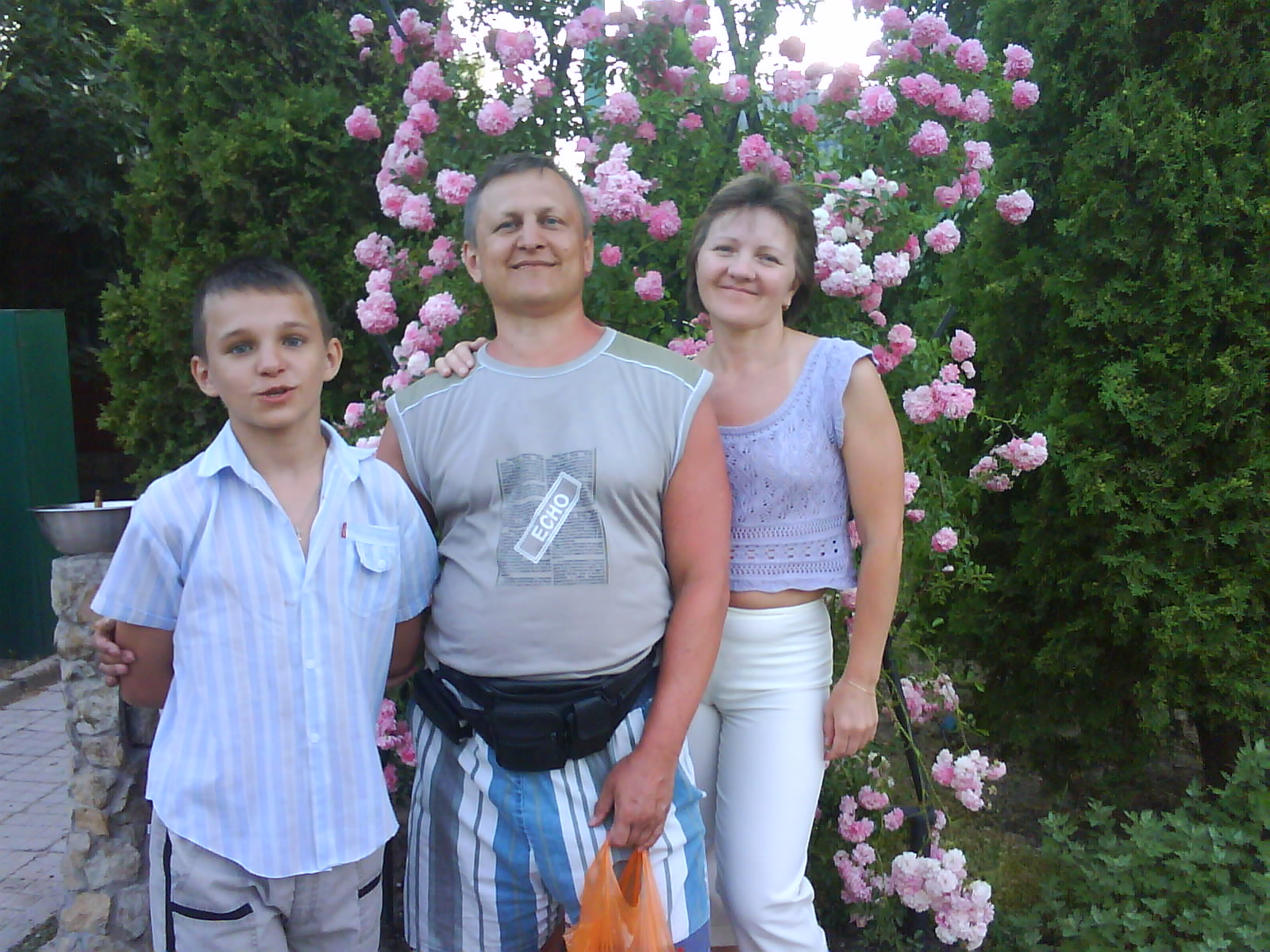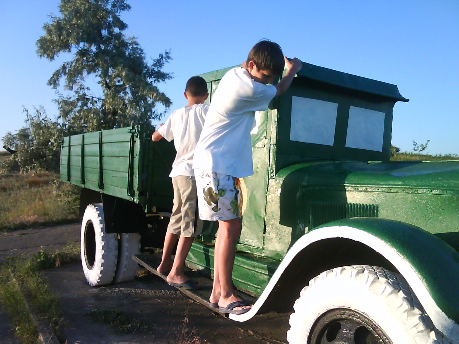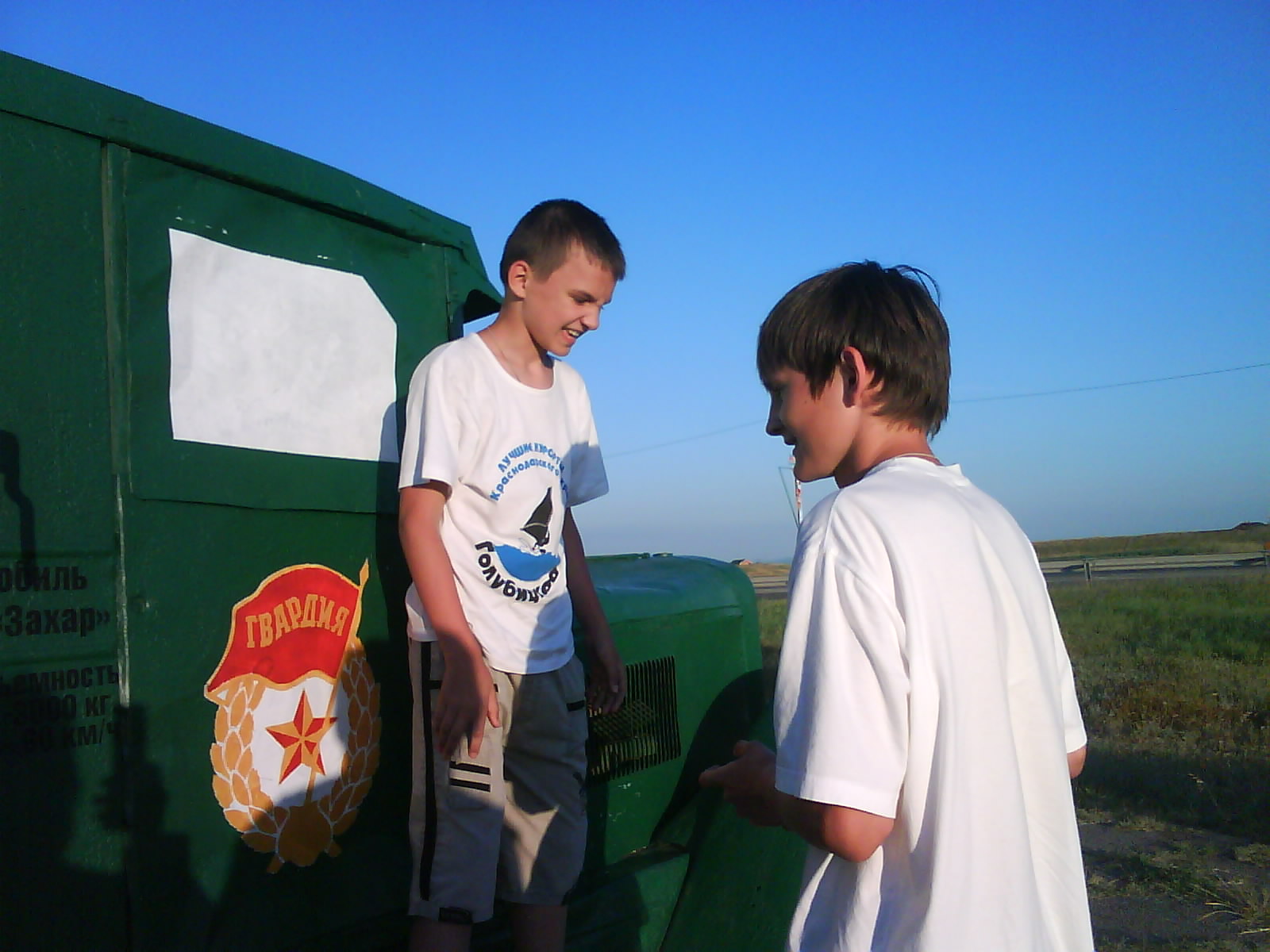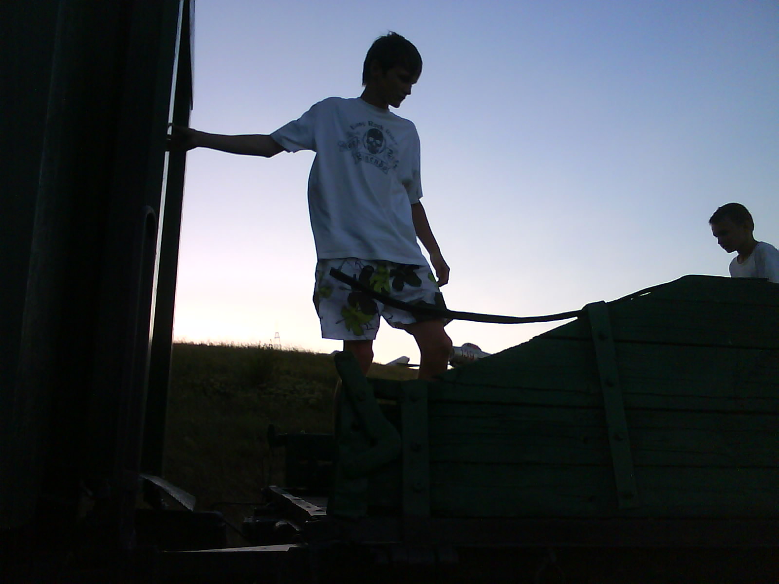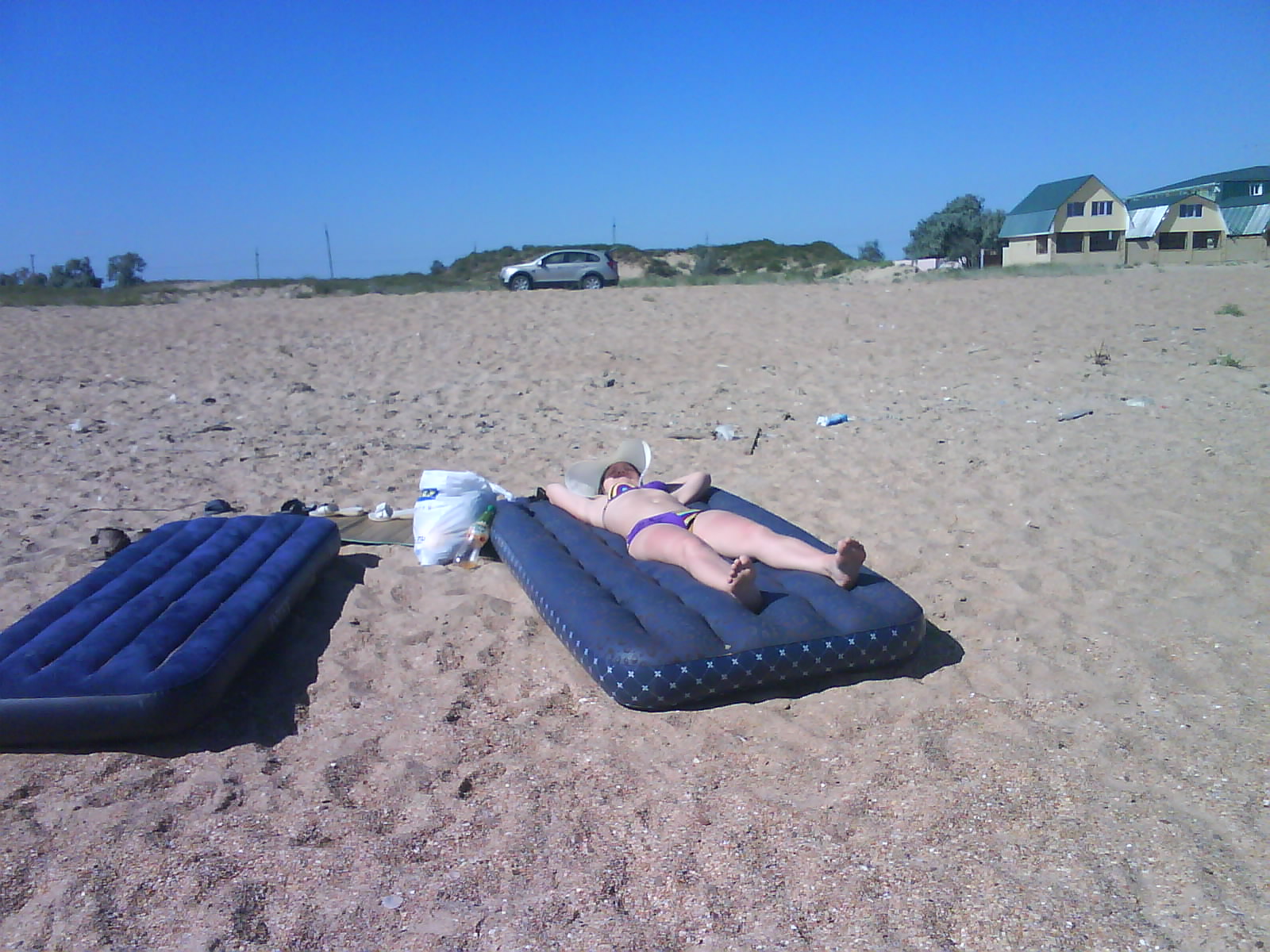 Спать улеглись на улице, во дворе. Комары куда то улетели. Спали без задних ног, умучались.