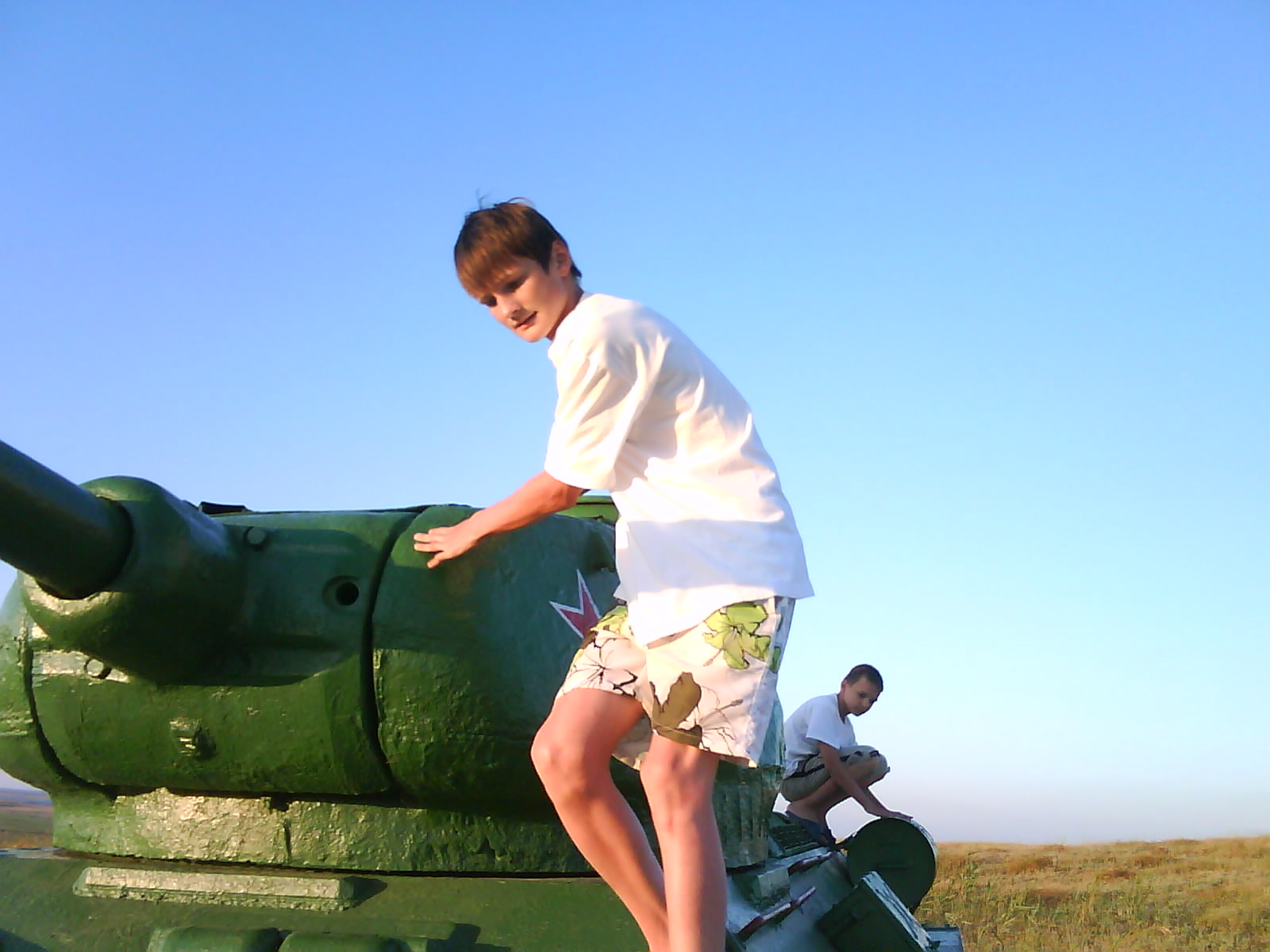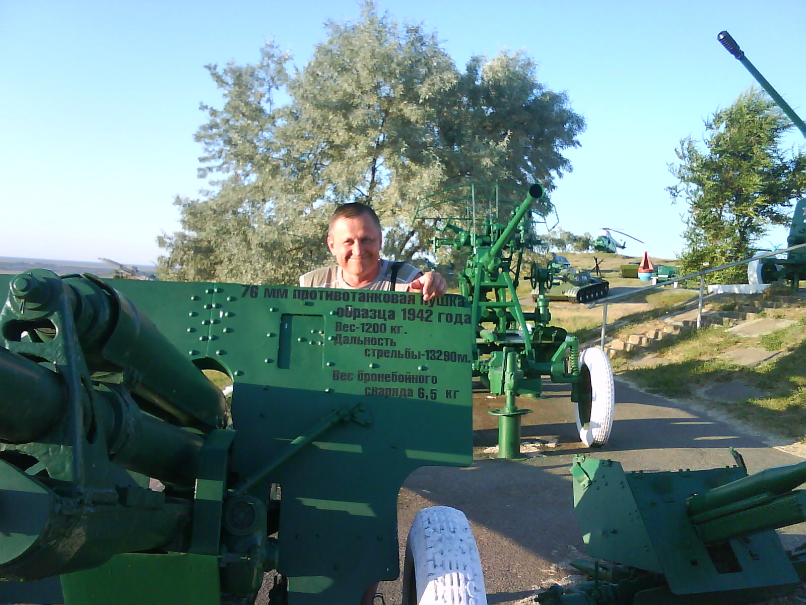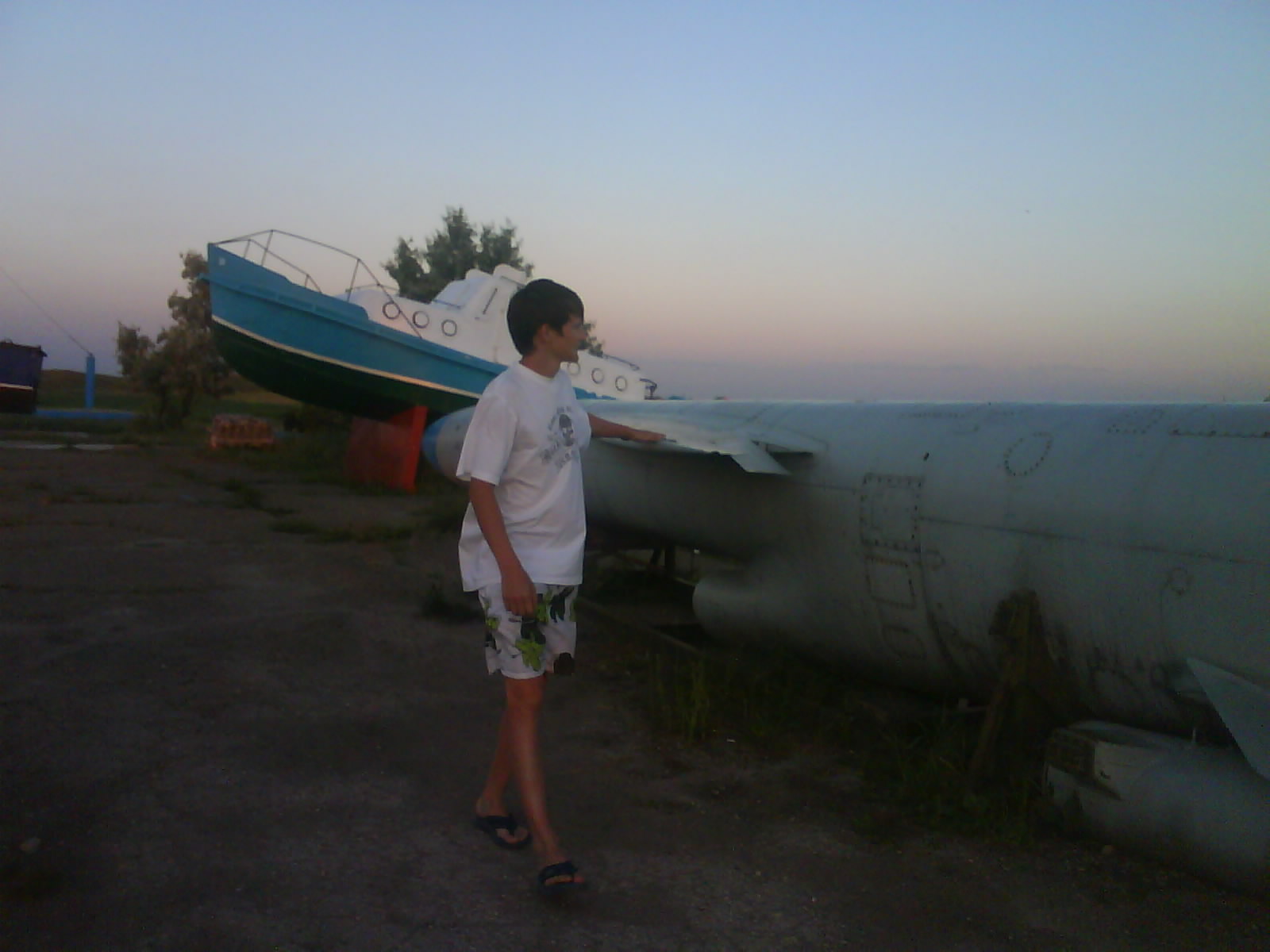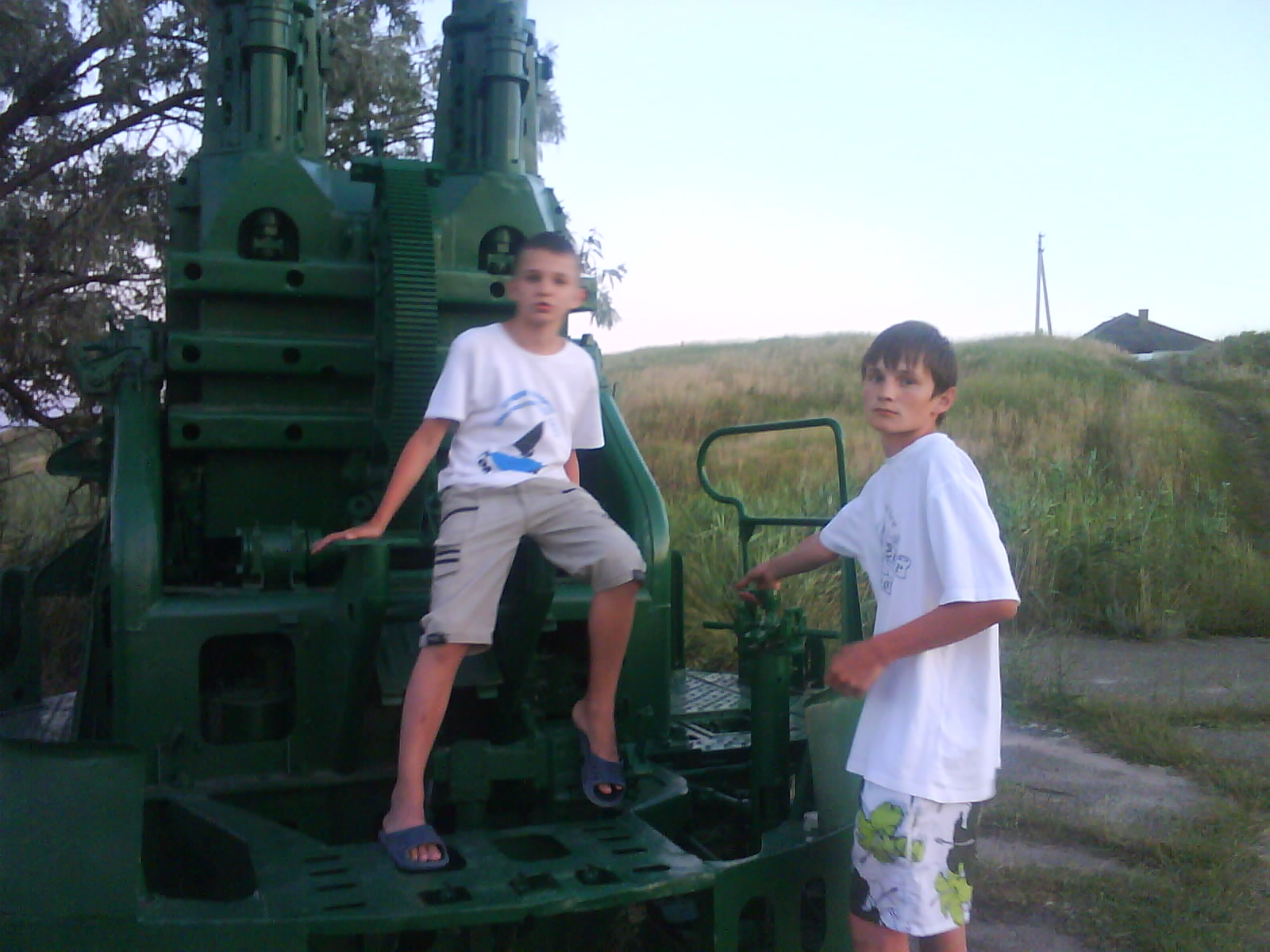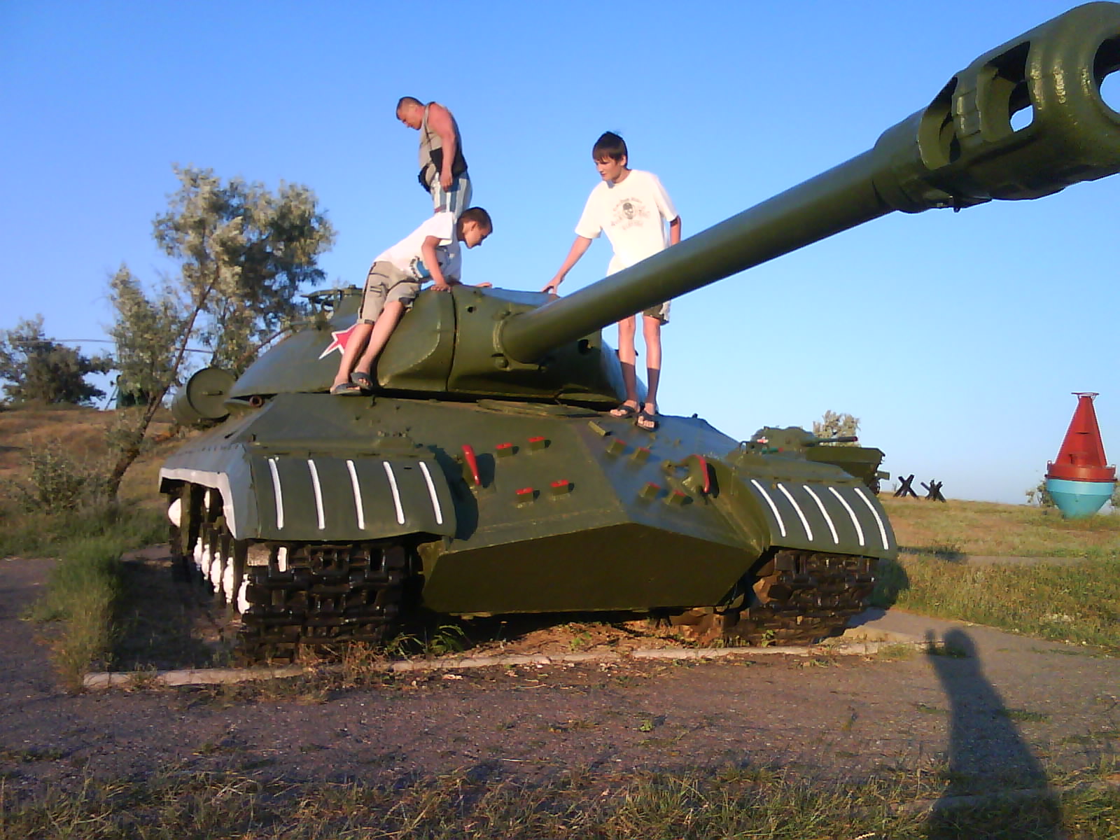 После ужина поехали на "Военную горку". Это такой музей военной техники под открытым небом, в Темрюке. Описывать не буду, есть куча фоток. Димка, подкалывая меня за толстопузую комплекцию, проиграл щелбан - не смог залезть на торпедный катер, а я залез. Потом то и он залез, но договор есть договор. Мамурля пыталась сфоткать значимое событие...неполучилось, к сожалению.