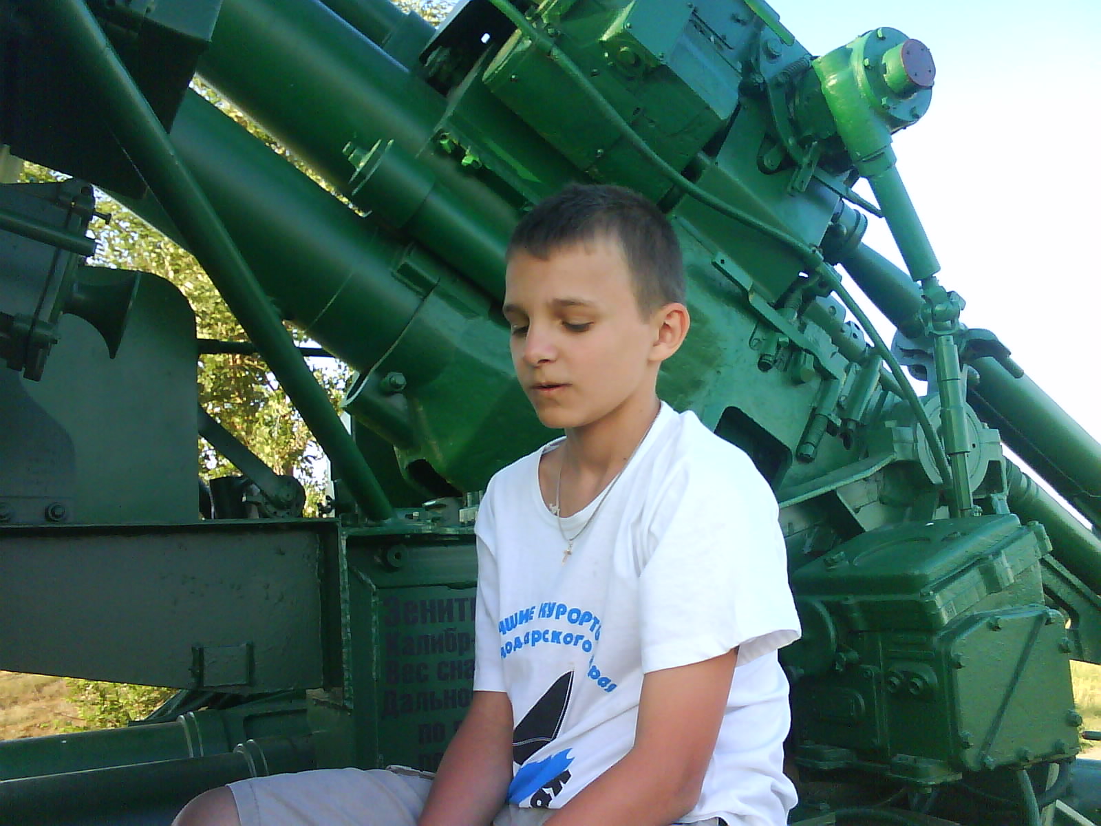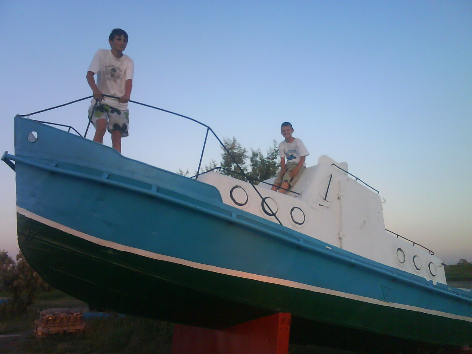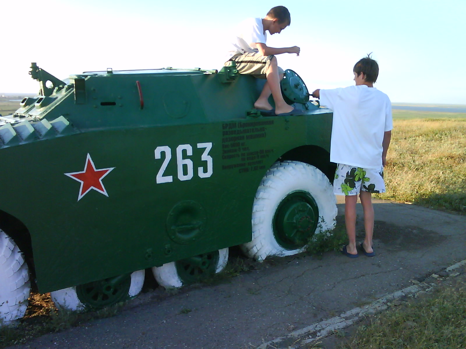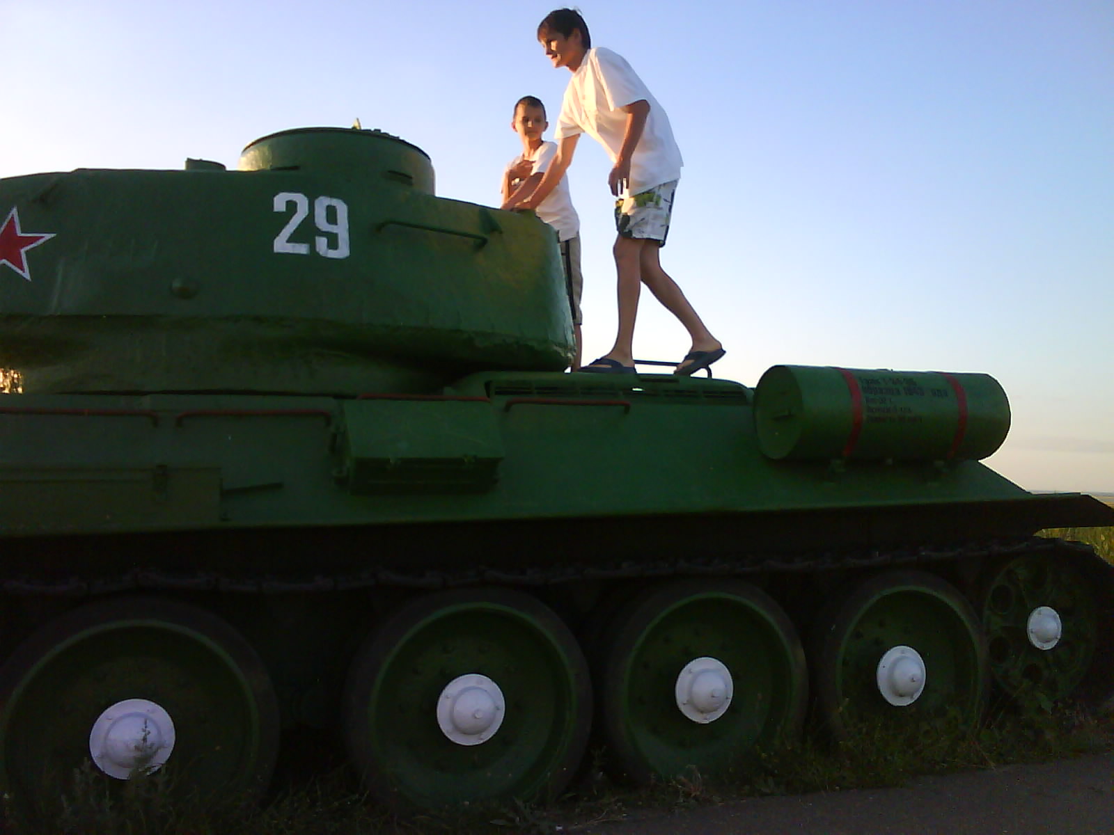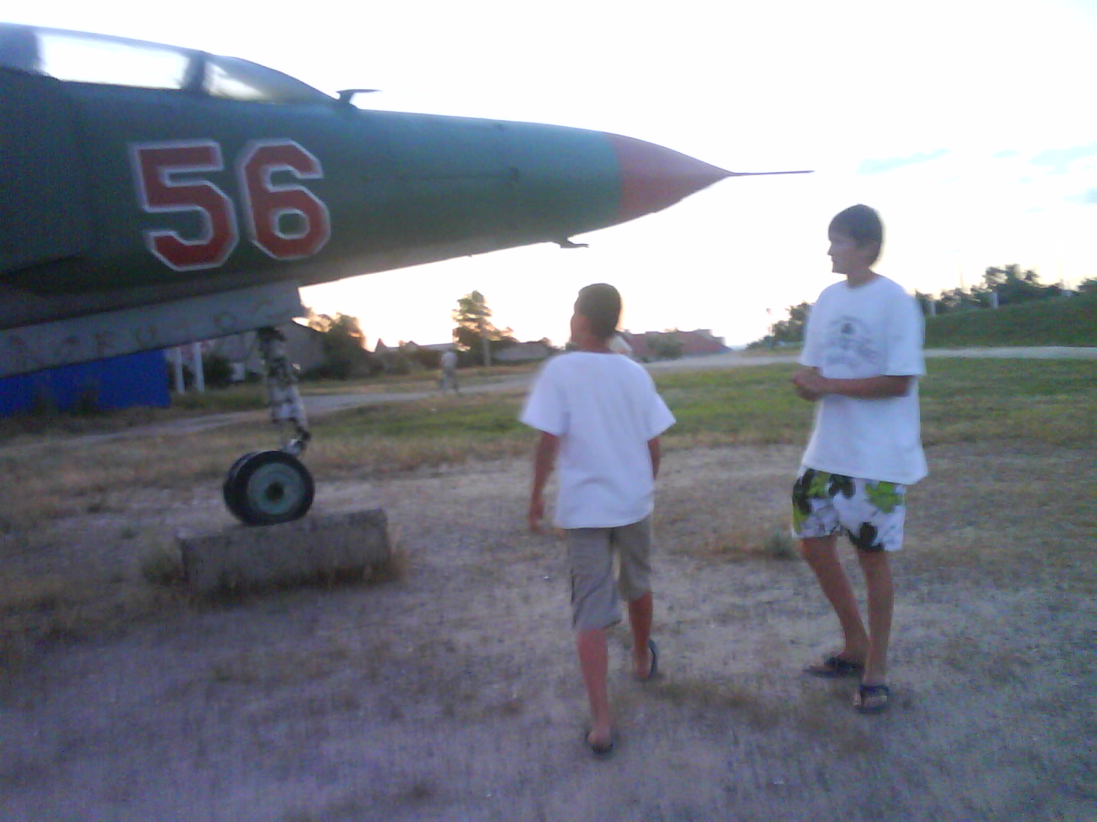 После ужина поехали на "Военную горку". Это такой музей военной техники под открытым небом, в Темрюке. Описывать не буду, есть куча фоток. Димка, подкалывая меня за толстопузую комплекцию, проиграл щелбан - не смог залезть на торпедный катер, а я залез. Потом то и он залез, но договор есть договор. Мамурля пыталась сфоткать значимое событие...неполучилось, к сожалению.