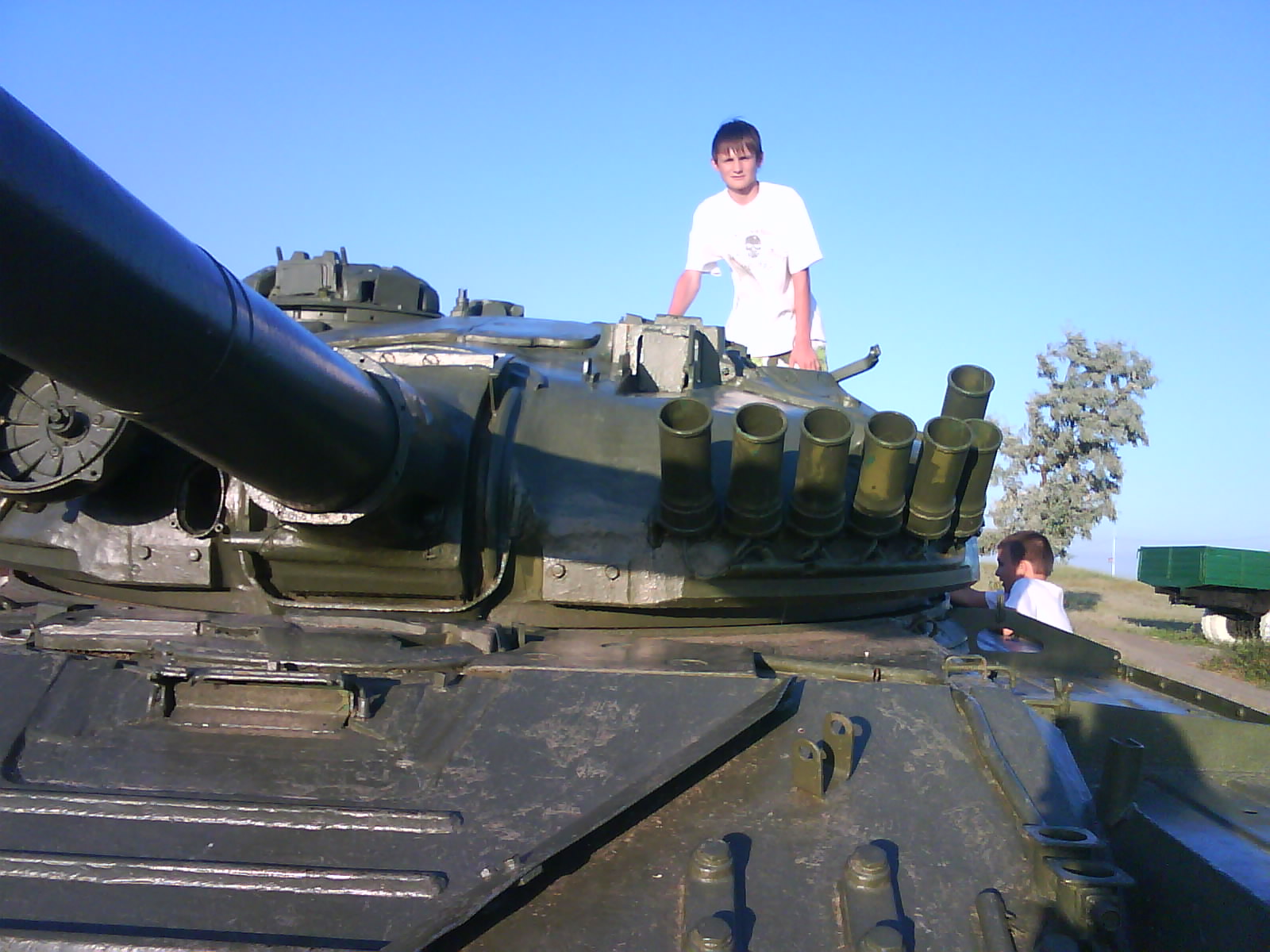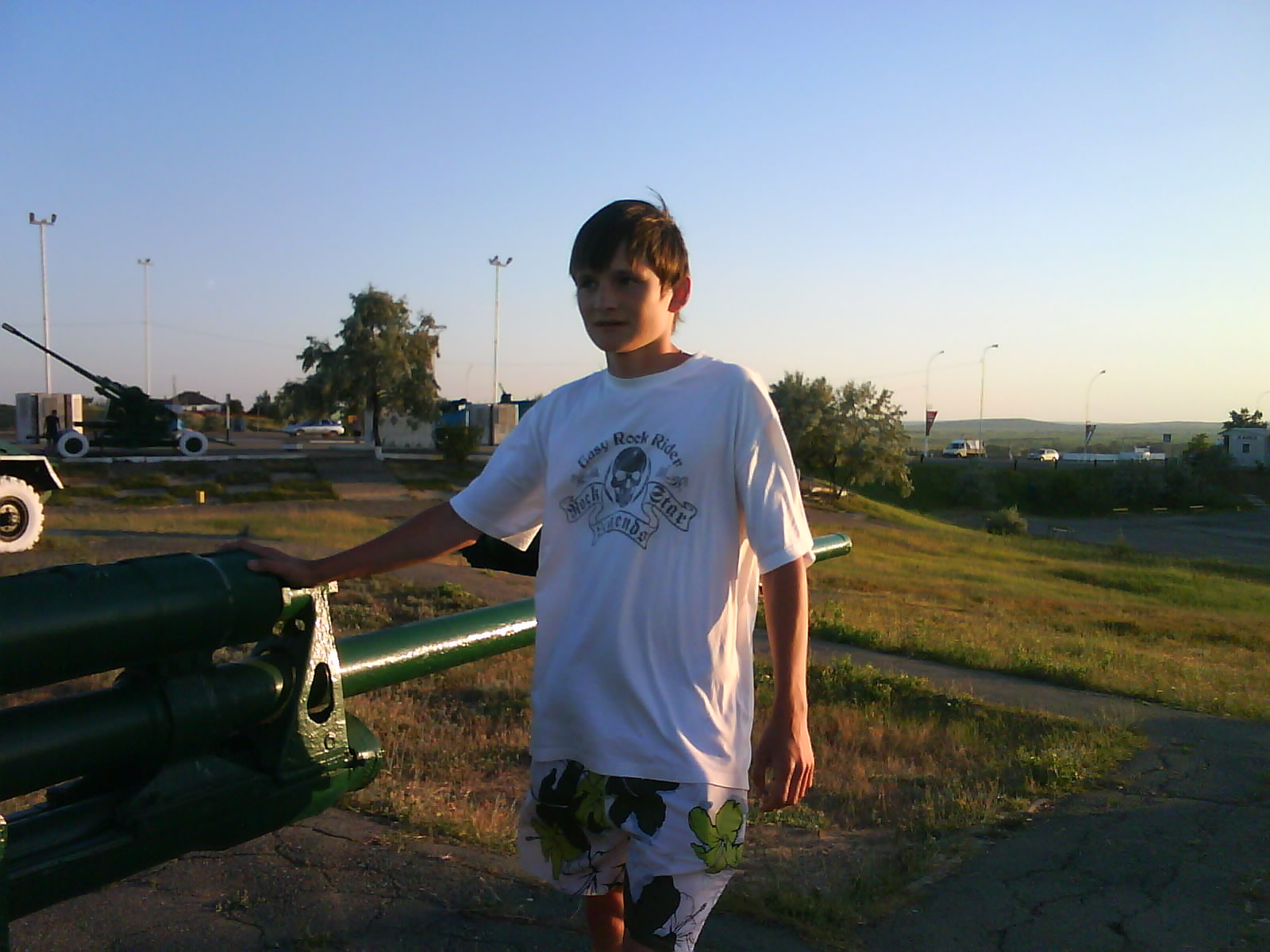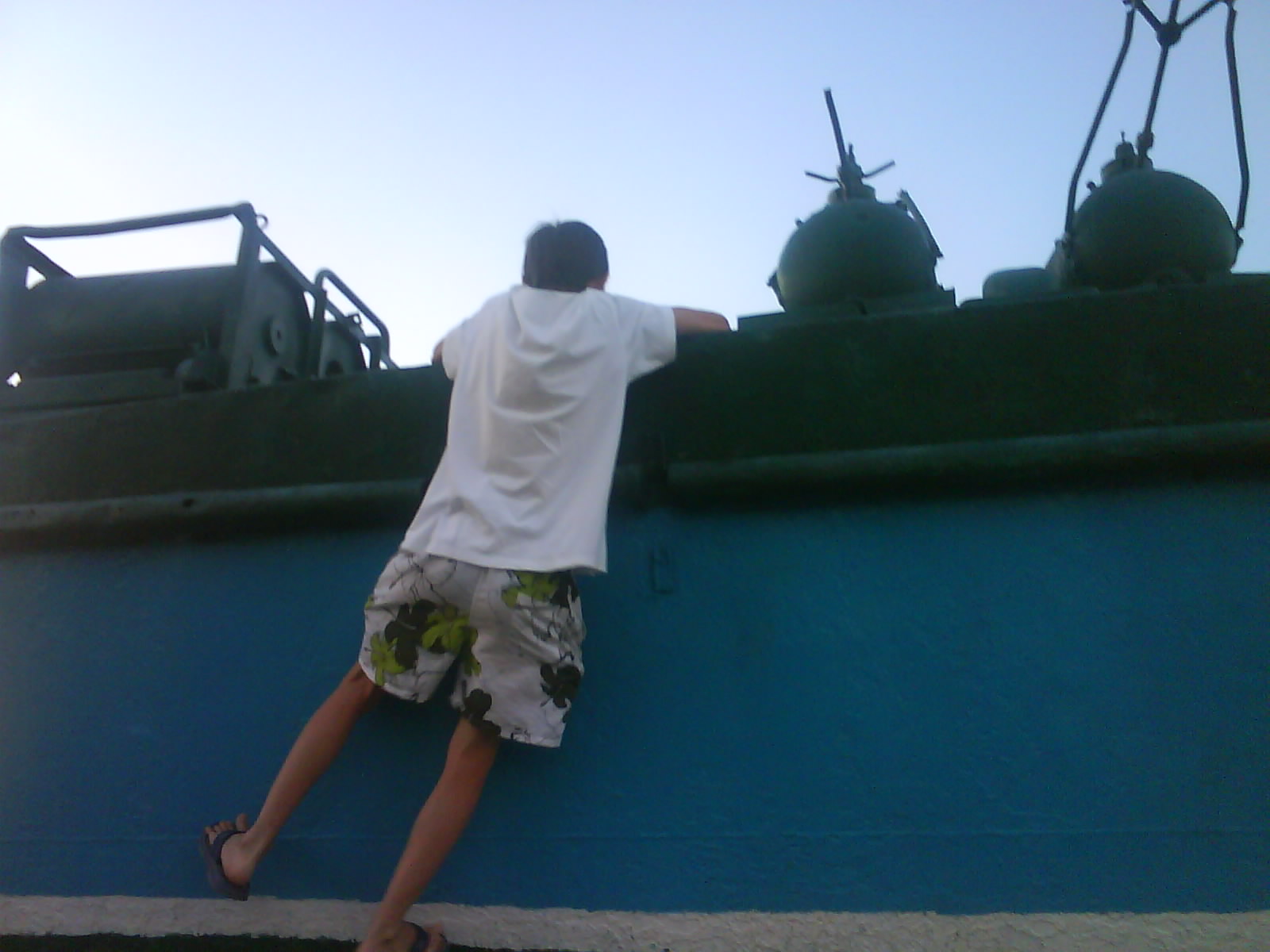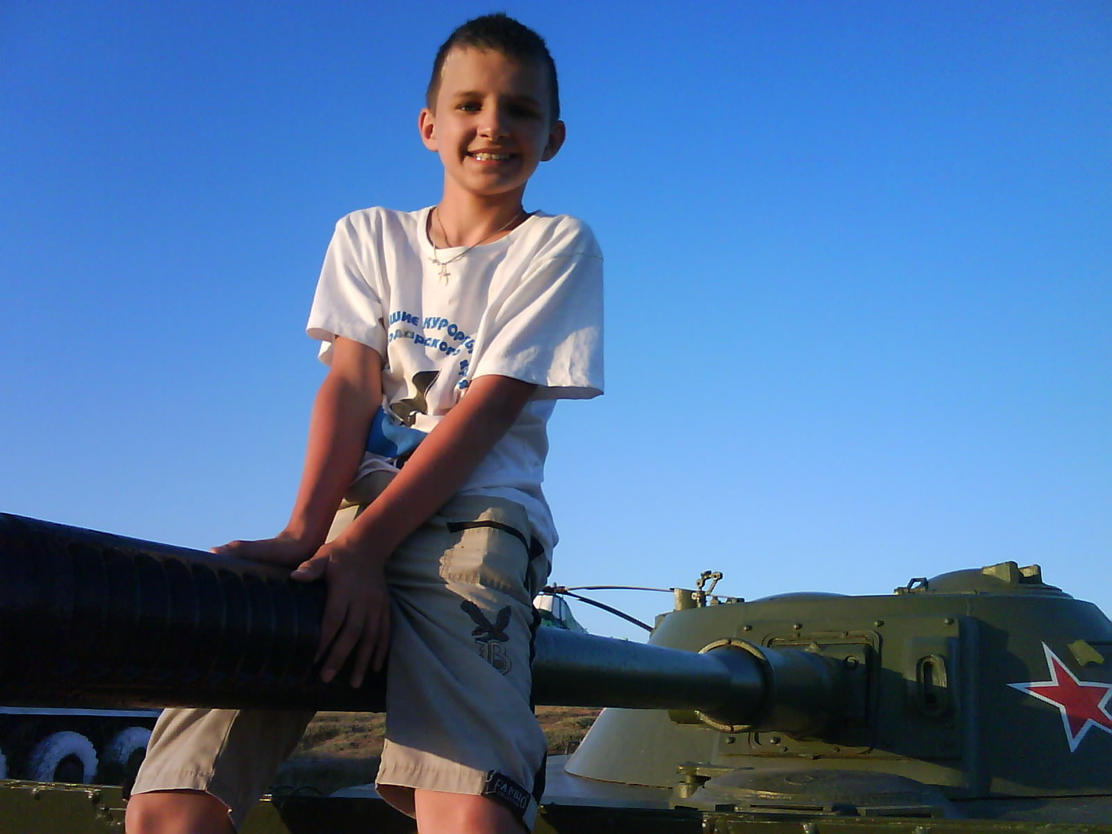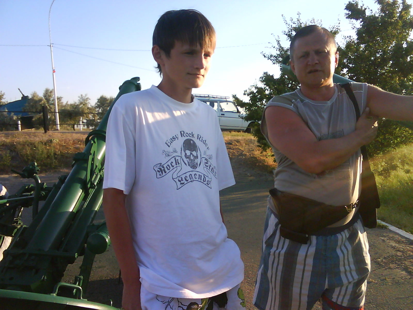 После ужина поехали на "Военную горку". Это такой музей военной техники под открытым небом, в Темрюке. Описывать не буду, есть куча фоток. Димка, подкалывая меня за толстопузую комплекцию, проиграл щелбан - не смог залезть на торпедный катер, а я залез. Потом то и он залез, но договор есть договор. Мамурля пыталась сфоткать значимое событие...неполучилось, к сожалению.