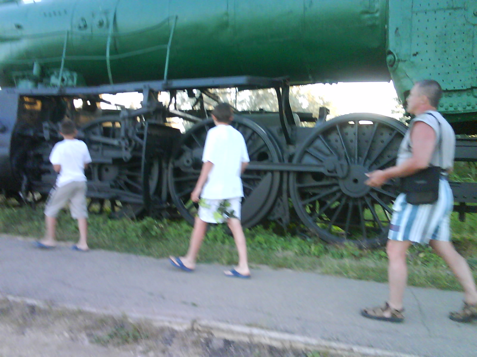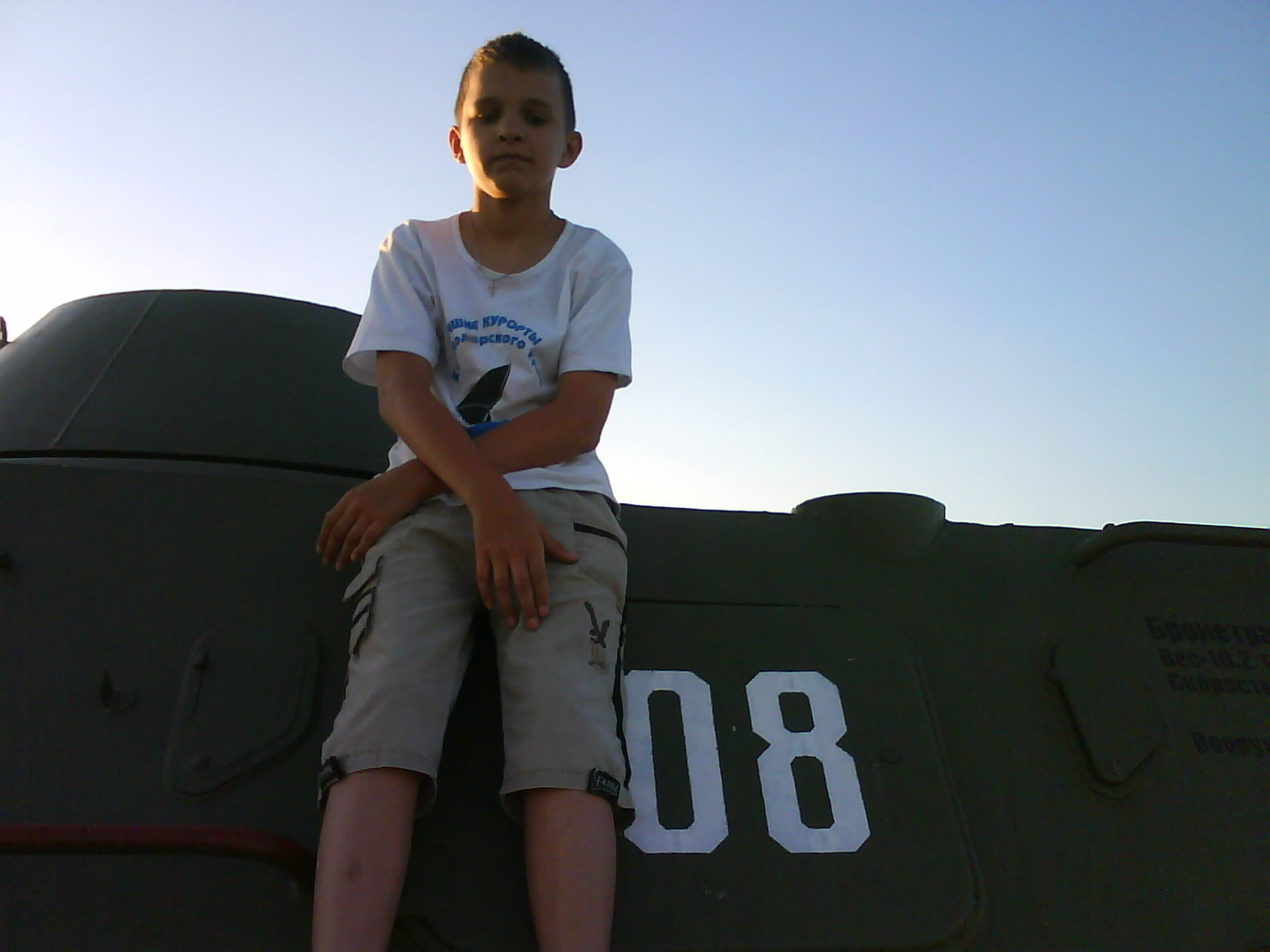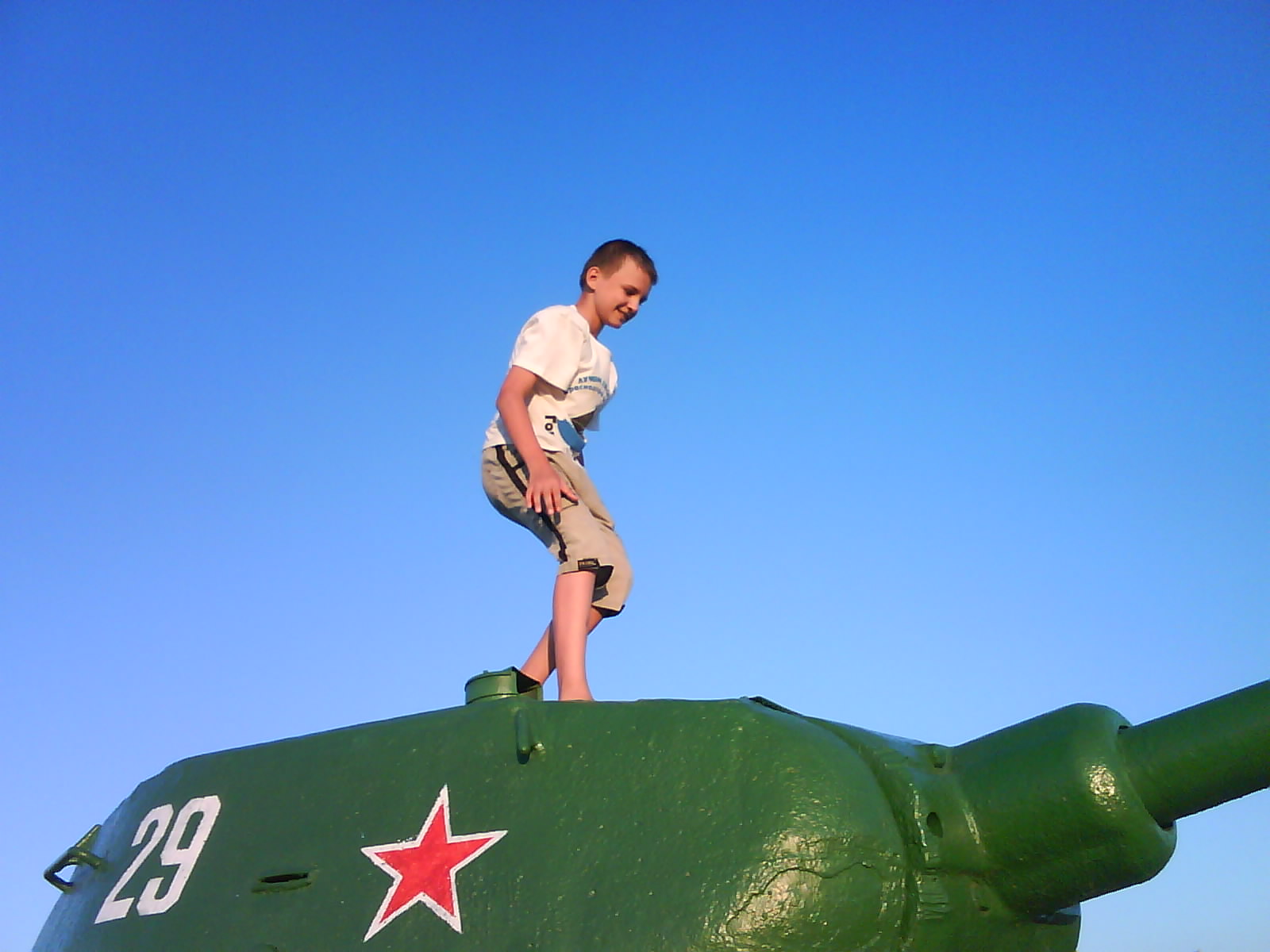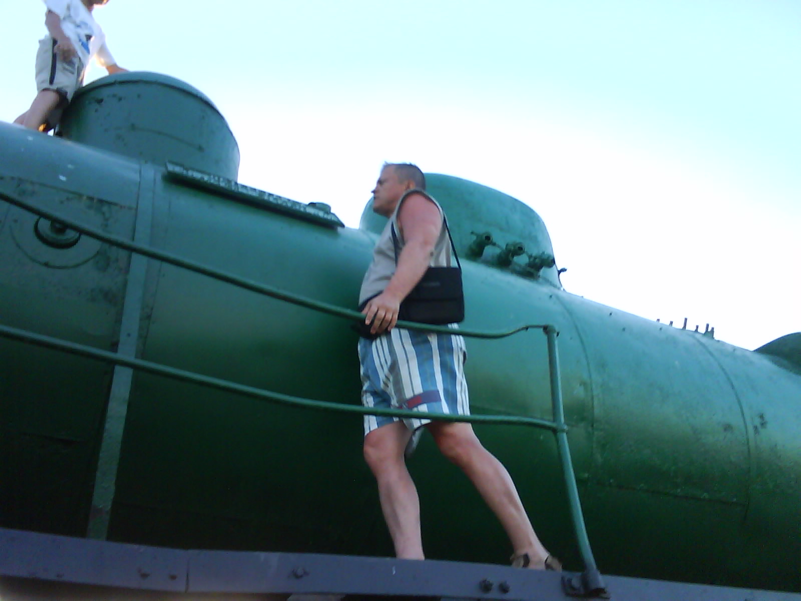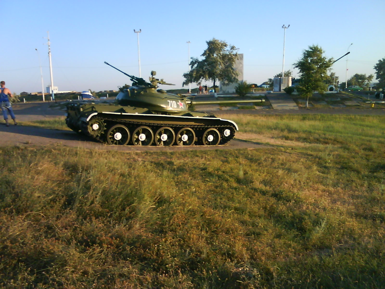 После ужина поехали на "Военную горку". Это такой музей военной техники под открытым небом, в Темрюке. Описывать не буду, есть куча фоток. Димка, подкалывая меня за толстопузую комплекцию, проиграл щелбан - не смог залезть на торпедный катер, а я залез. Потом то и он залез, но договор есть договор. Мамурля пыталась сфоткать значимое событие...неполучилось, к сожалению.