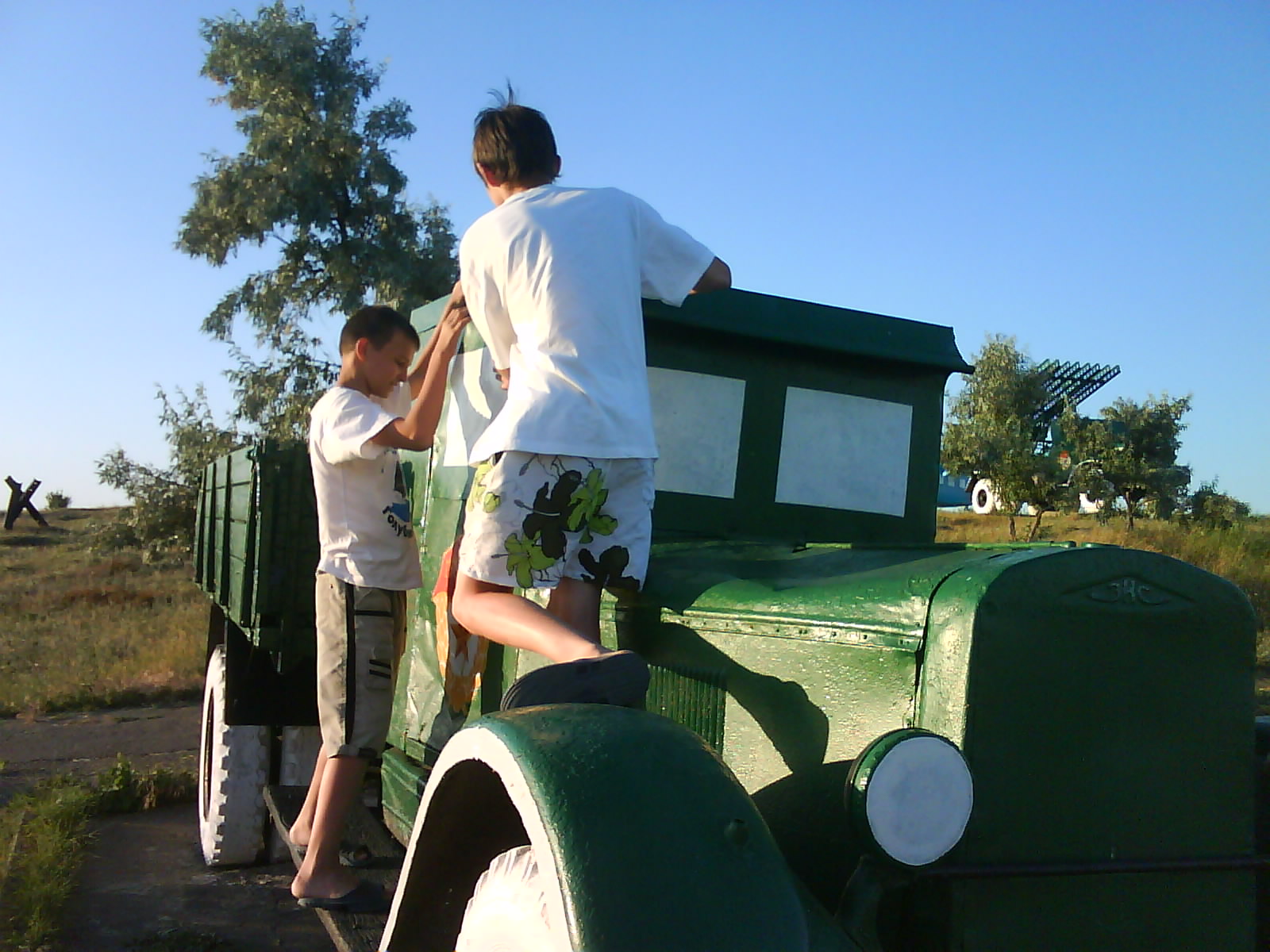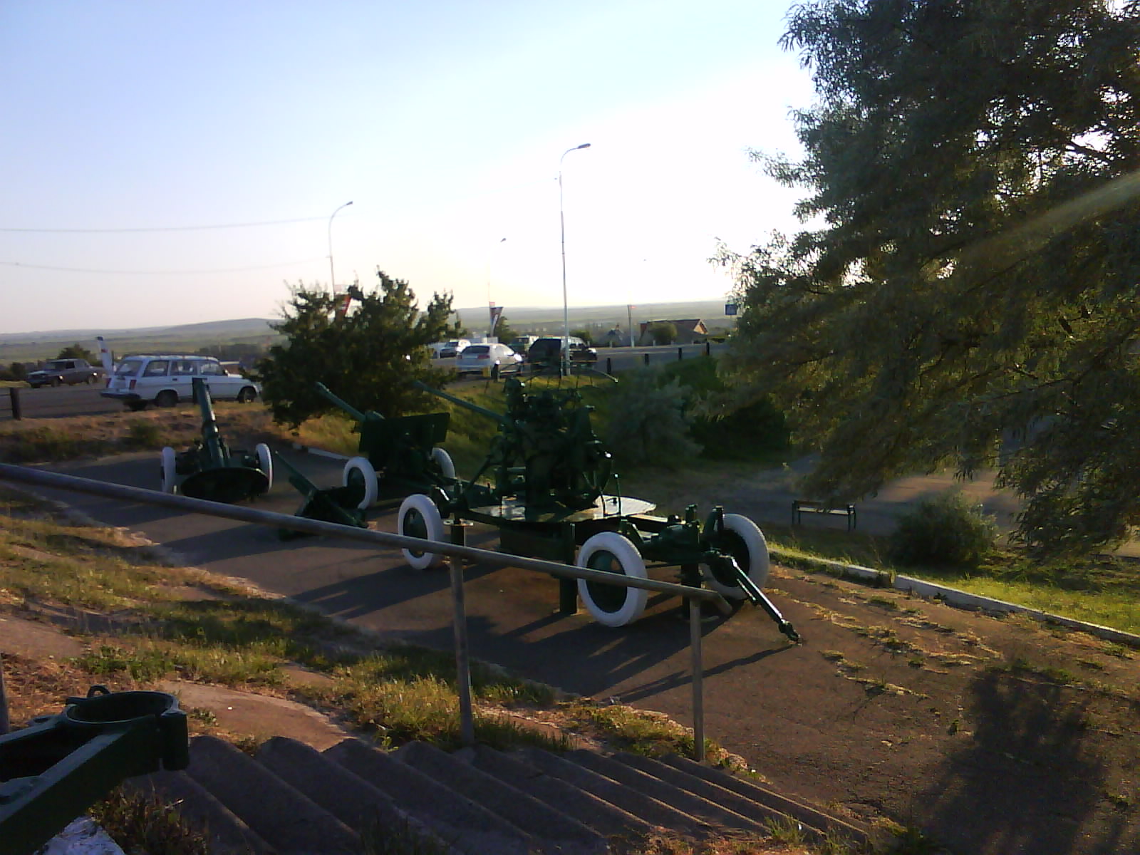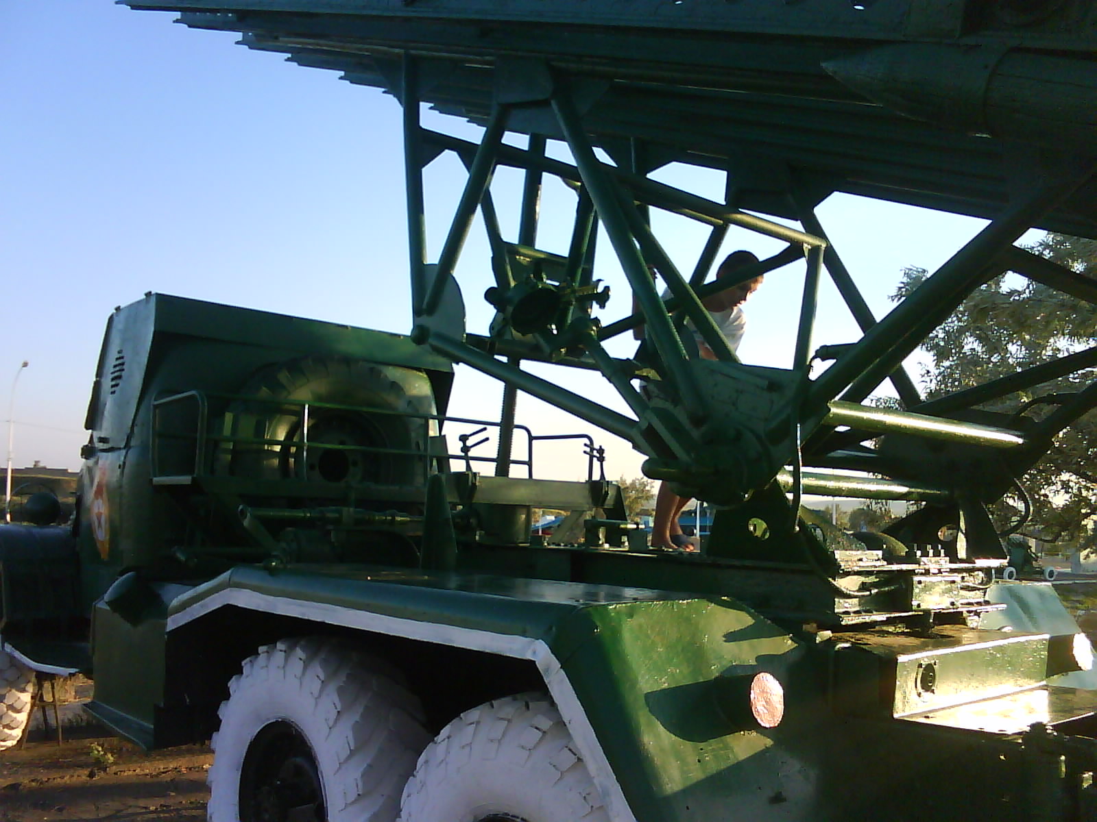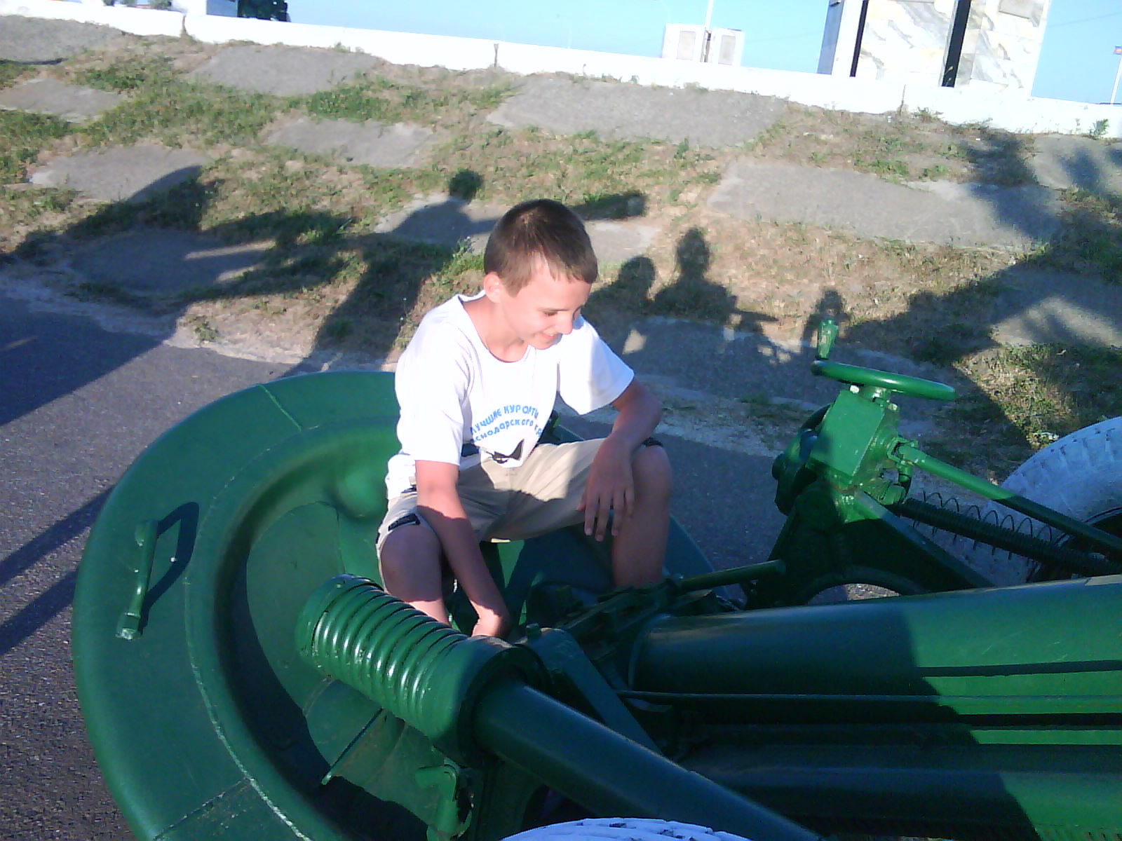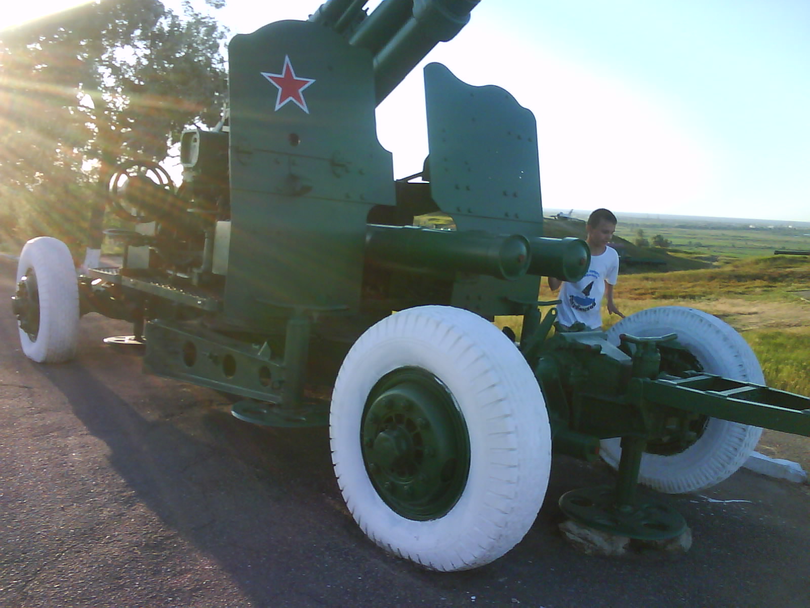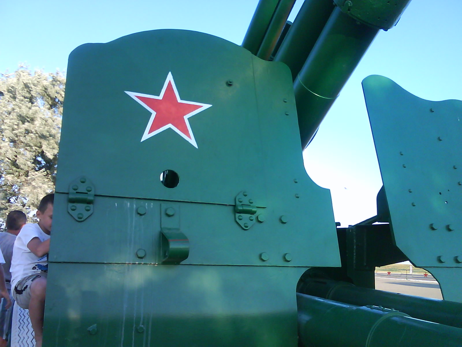 После ужина поехали на "Военную горку". Это такой музей военной техники под открытым небом, в Темрюке. Описывать не буду, есть куча фоток. Димка, подкалывая меня за толстопузую комплекцию, проиграл щелбан - не смог залезть на торпедный катер, а я залез. Потом то и он залез, но договор есть договор. Мамурля пыталась сфоткать значимое событие...неполучилось, к сожалению.