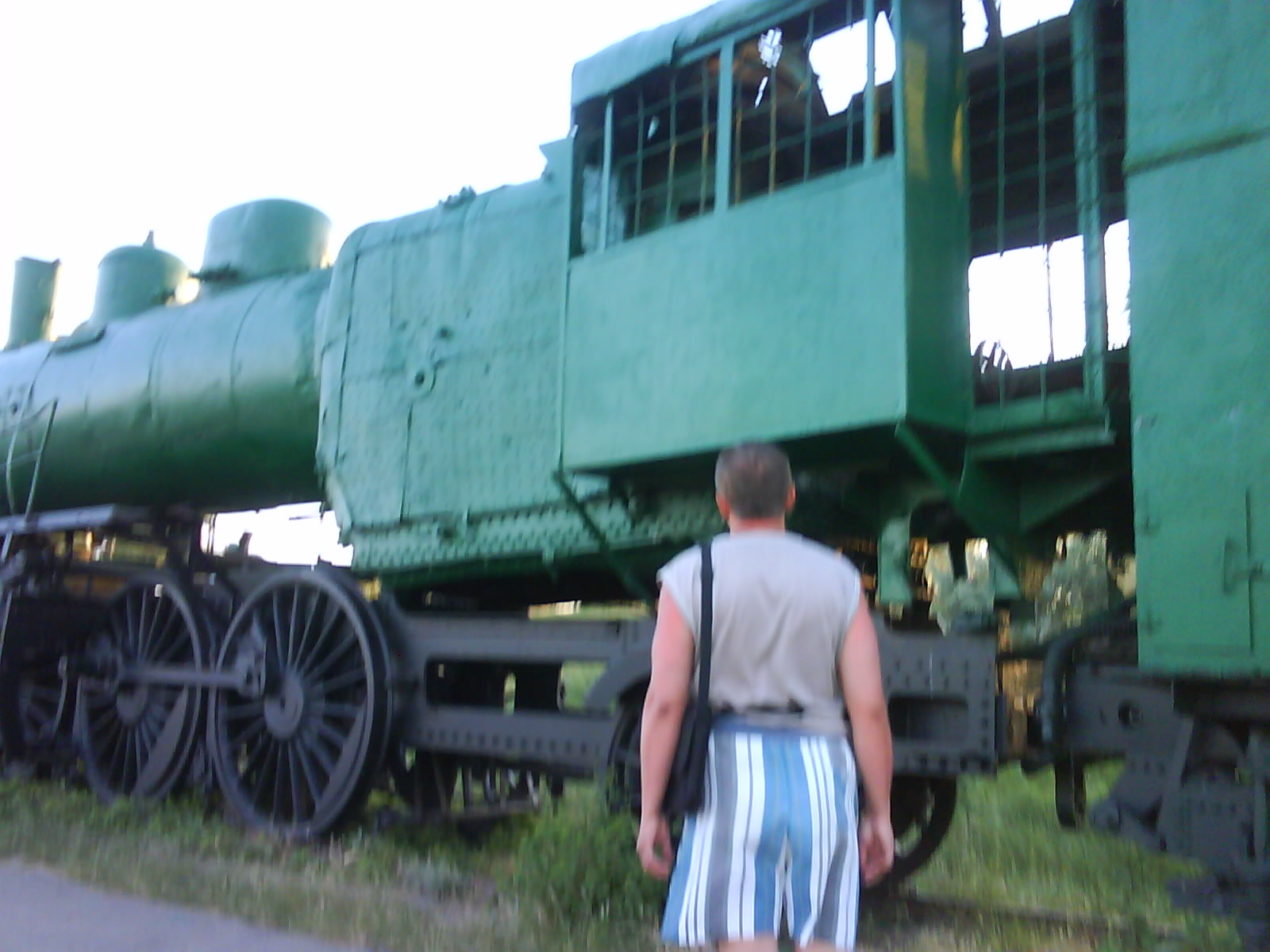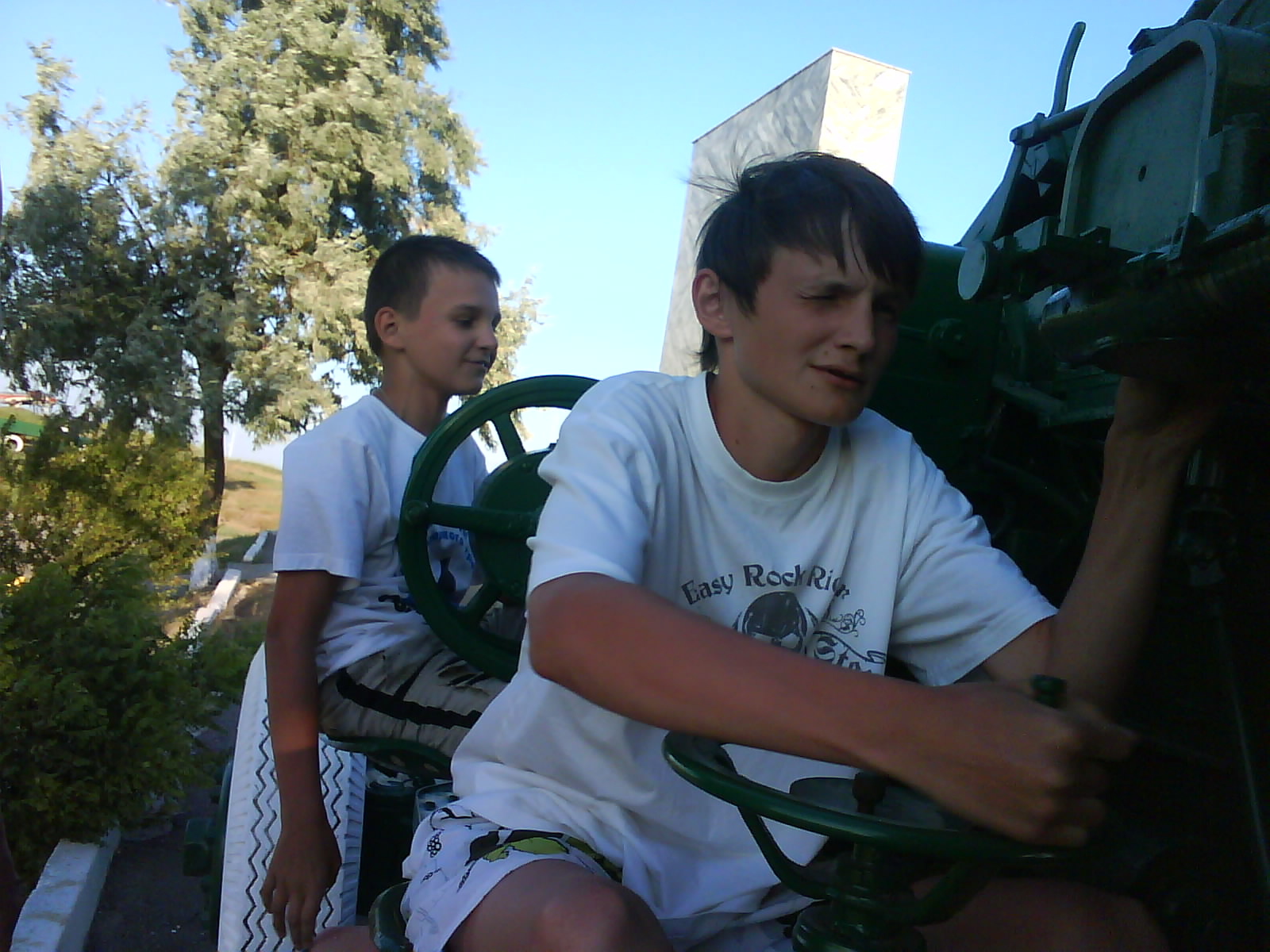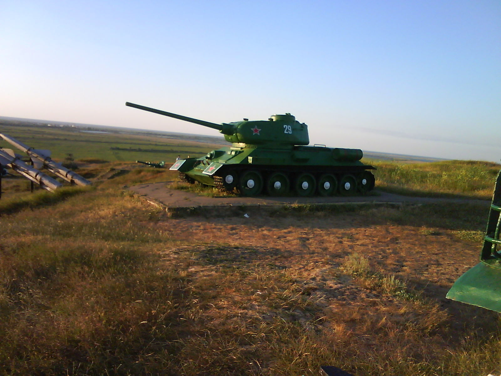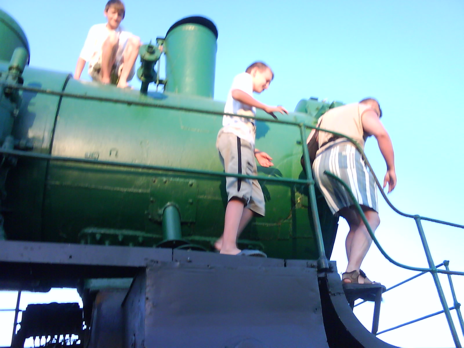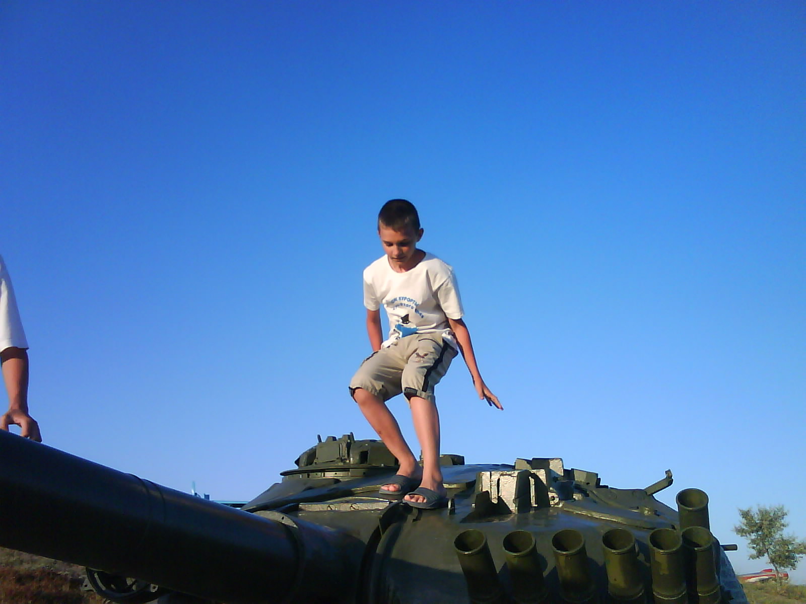 После ужина поехали на "Военную горку". Это такой музей военной техники под открытым небом, в Темрюке. Описывать не буду, есть куча фоток. Димка, подкалывая меня за толстопузую комплекцию, проиграл щелбан - не смог залезть на торпедный катер, а я залез. Потом то и он залез, но договор есть договор. Мамурля пыталась сфоткать значимое событие...неполучилось, к сожалению.