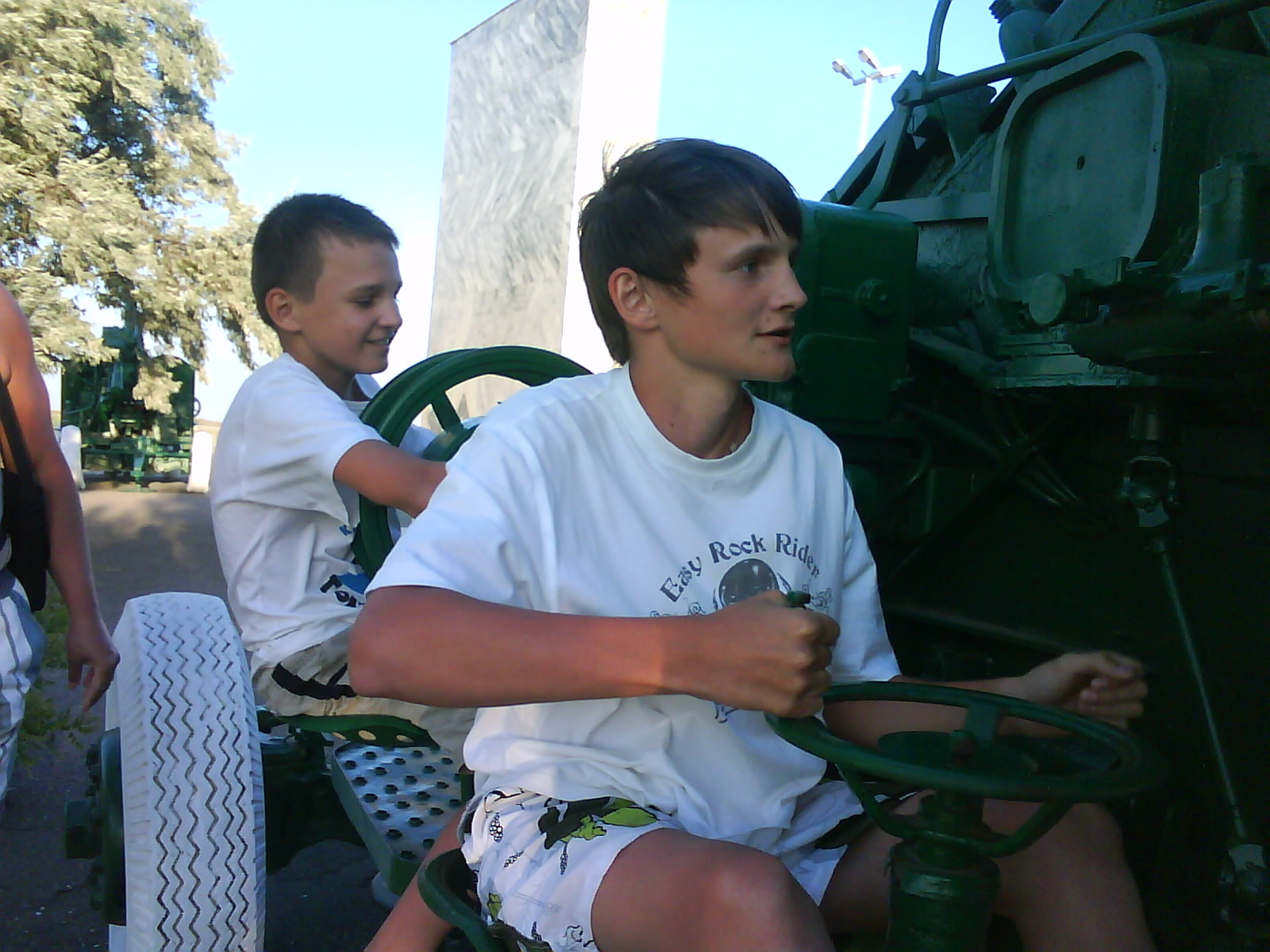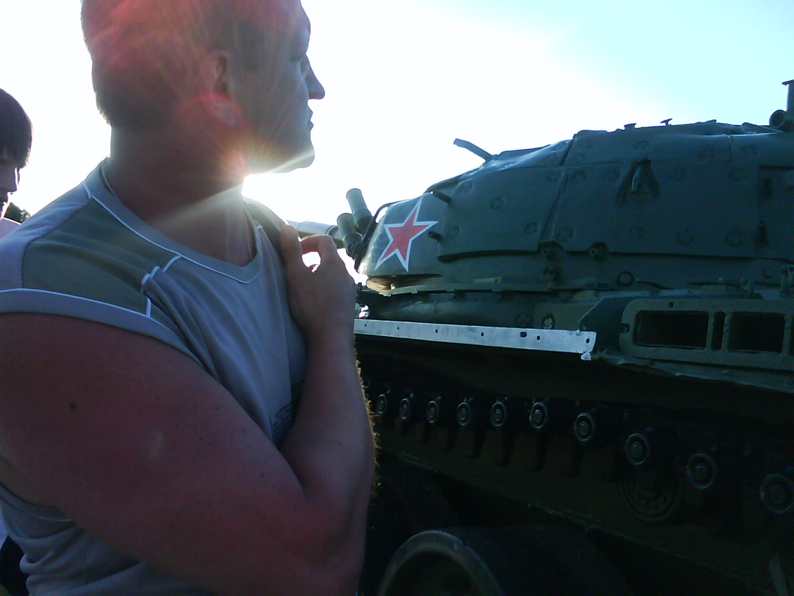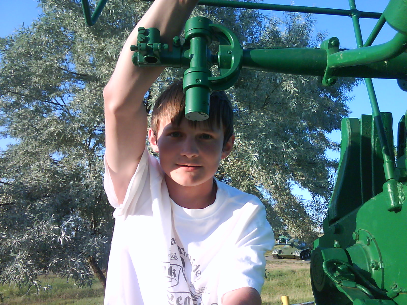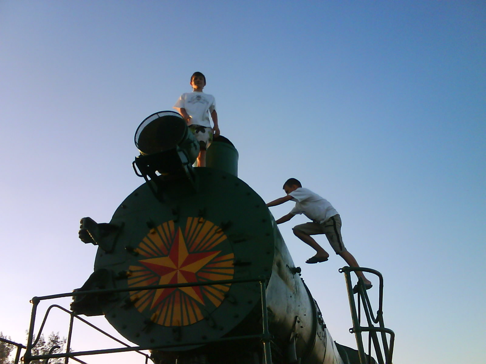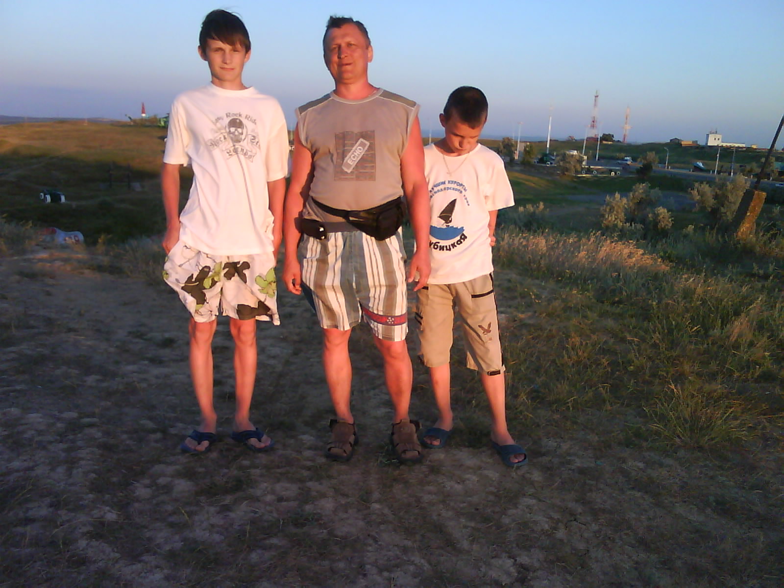 После ужина поехали на "Военную горку". Это такой музей военной техники под открытым небом, в Темрюке. Описывать не буду, есть куча фоток. Димка, подкалывая меня за толстопузую комплекцию, проиграл щелбан - не смог залезть на торпедный катер, а я залез. Потом то и он залез, но договор есть договор. Мамурля пыталась сфоткать значимое событие...неполучилось, к сожалению.