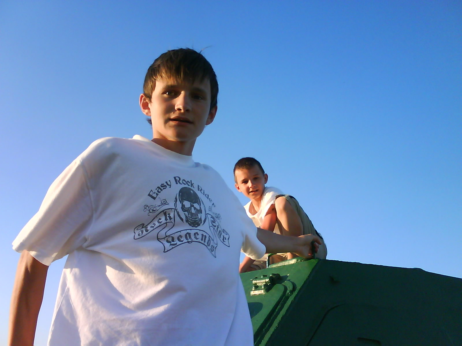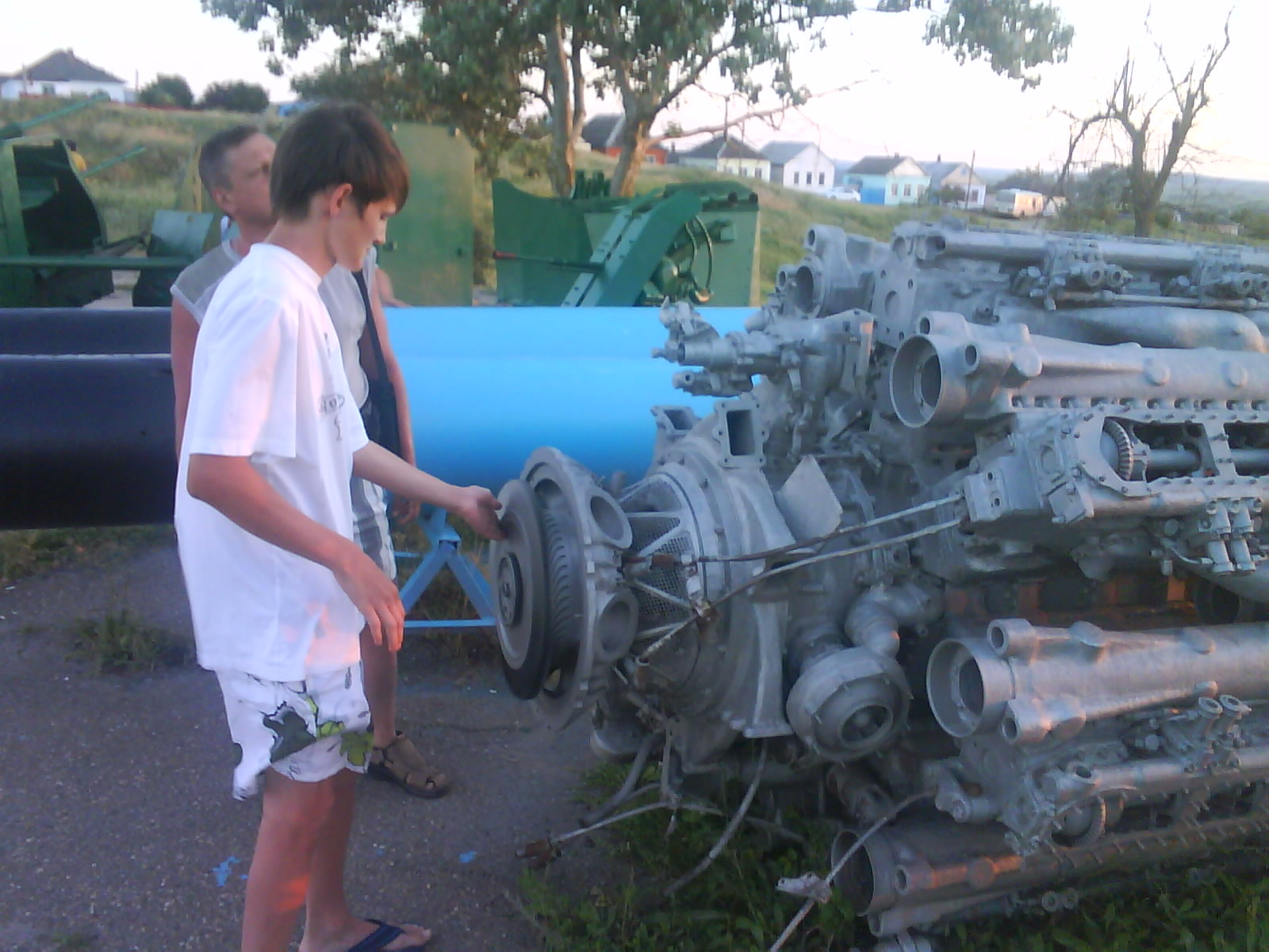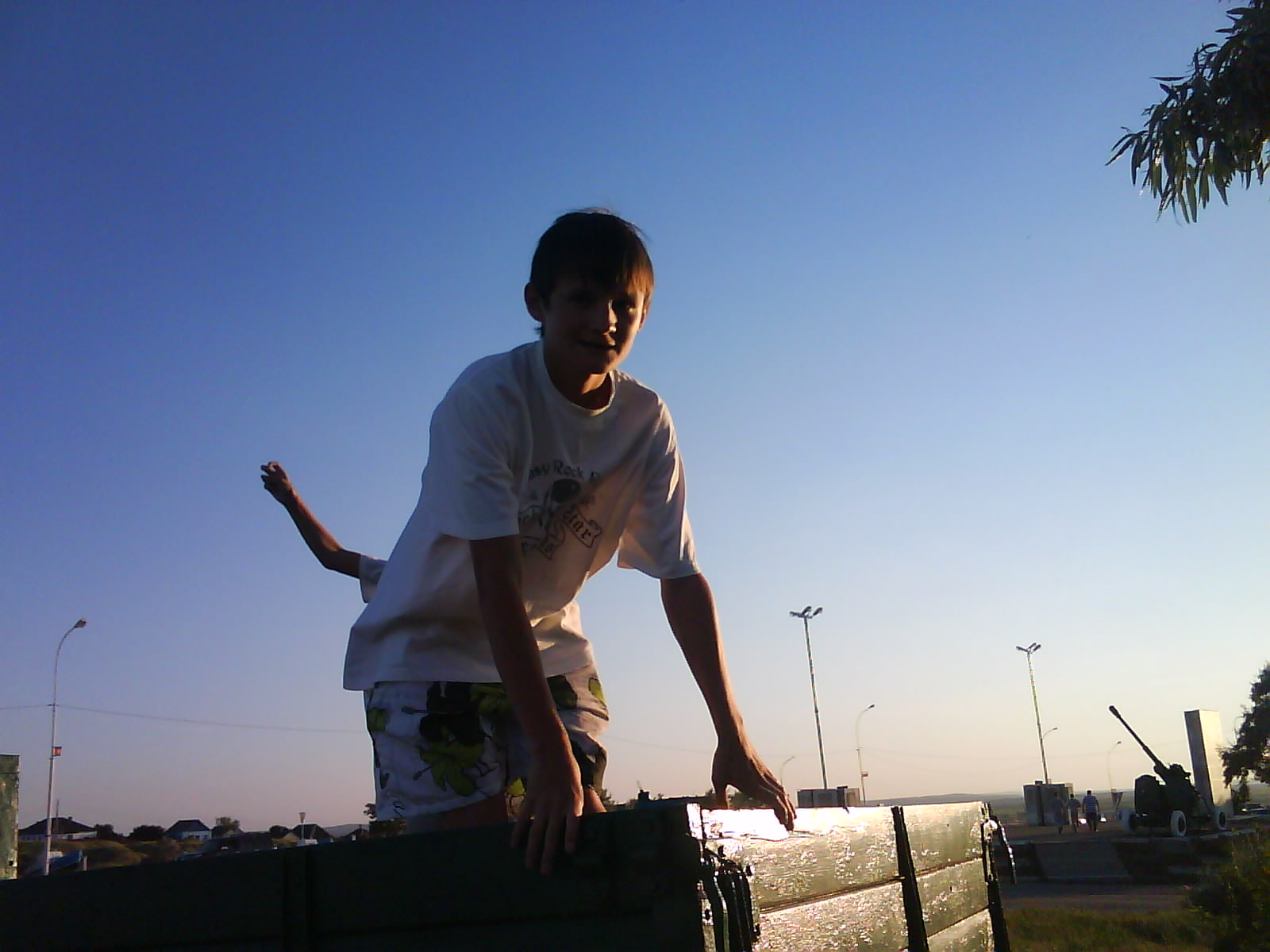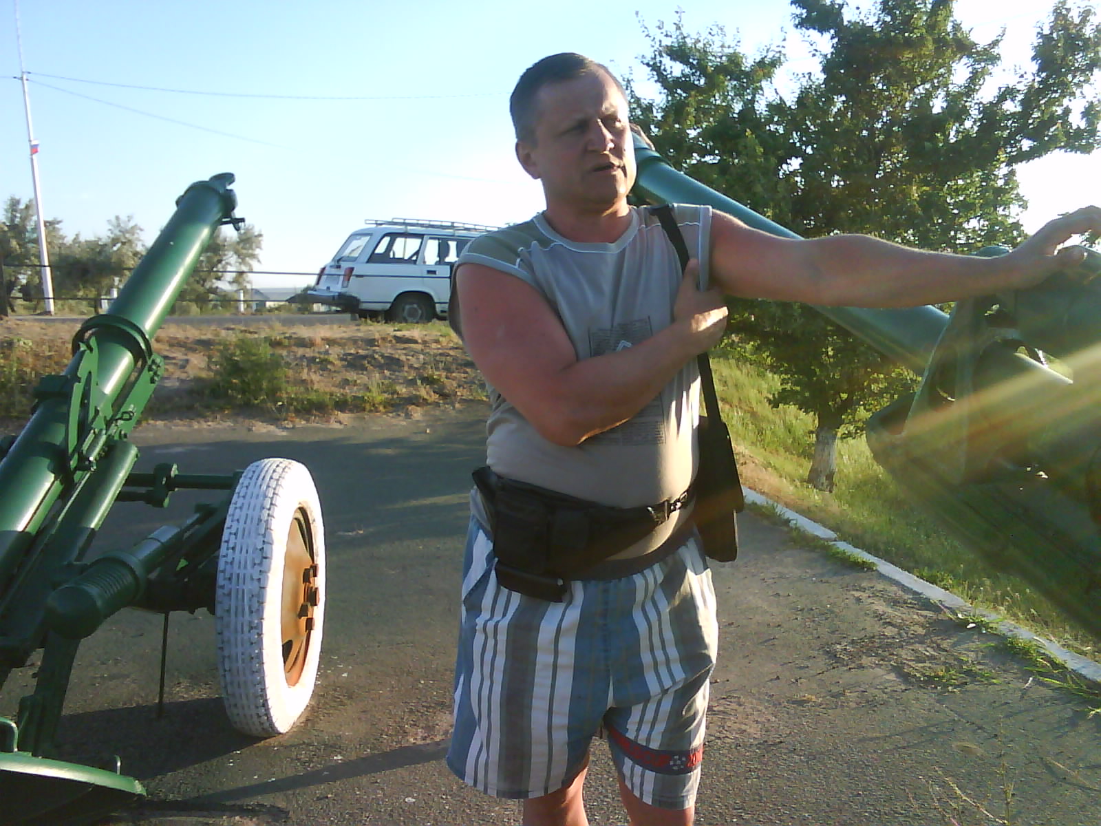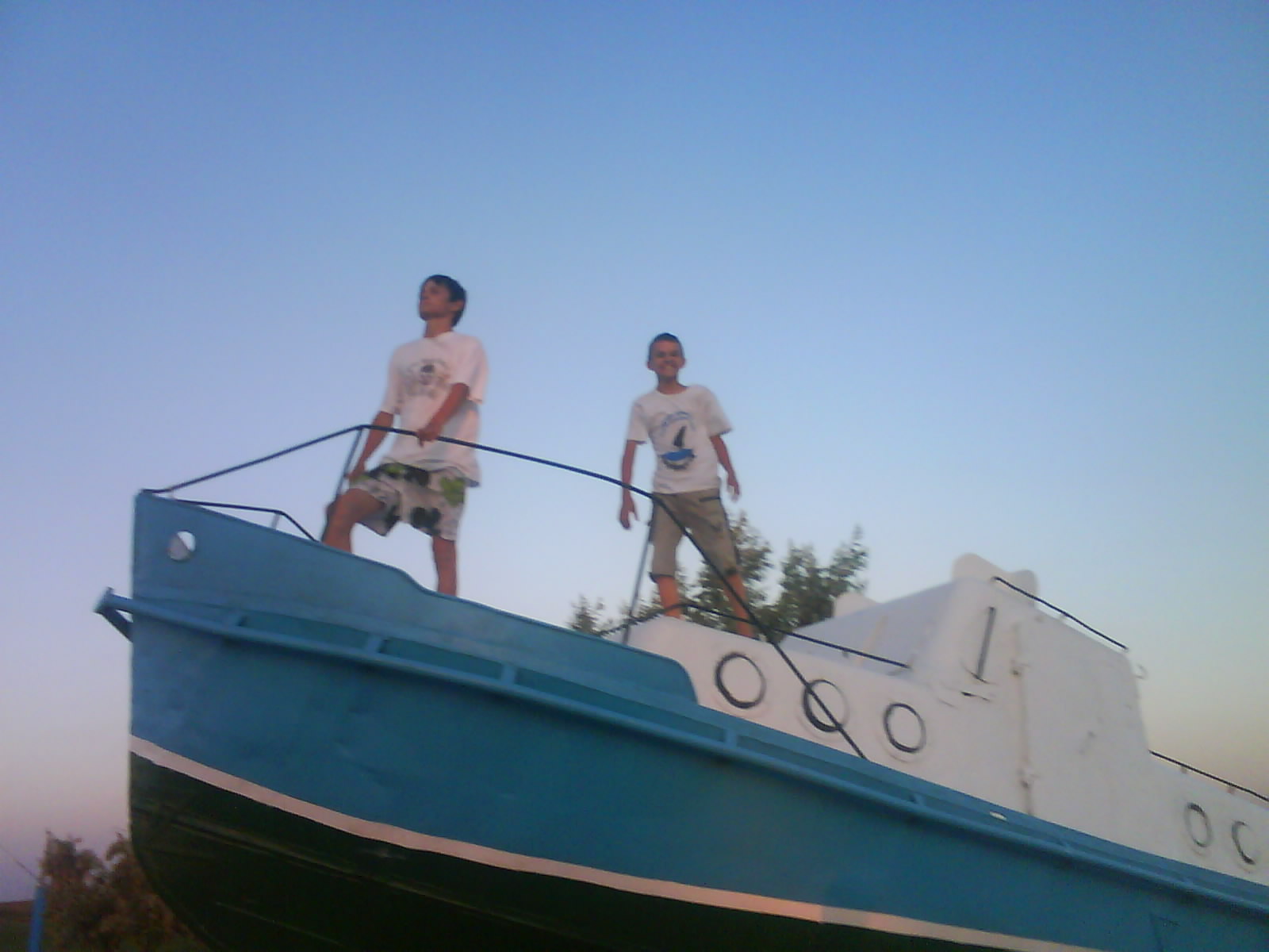 После ужина поехали на "Военную горку". Это такой музей военной техники под открытым небом, в Темрюке. Описывать не буду, есть куча фоток. Димка, подкалывая меня за толстопузую комплекцию, проиграл щелбан - не смог залезть на торпедный катер, а я залез. Потом то и он залез, но договор есть договор. Мамурля пыталась сфоткать значимое событие...неполучилось, к сожалению.
