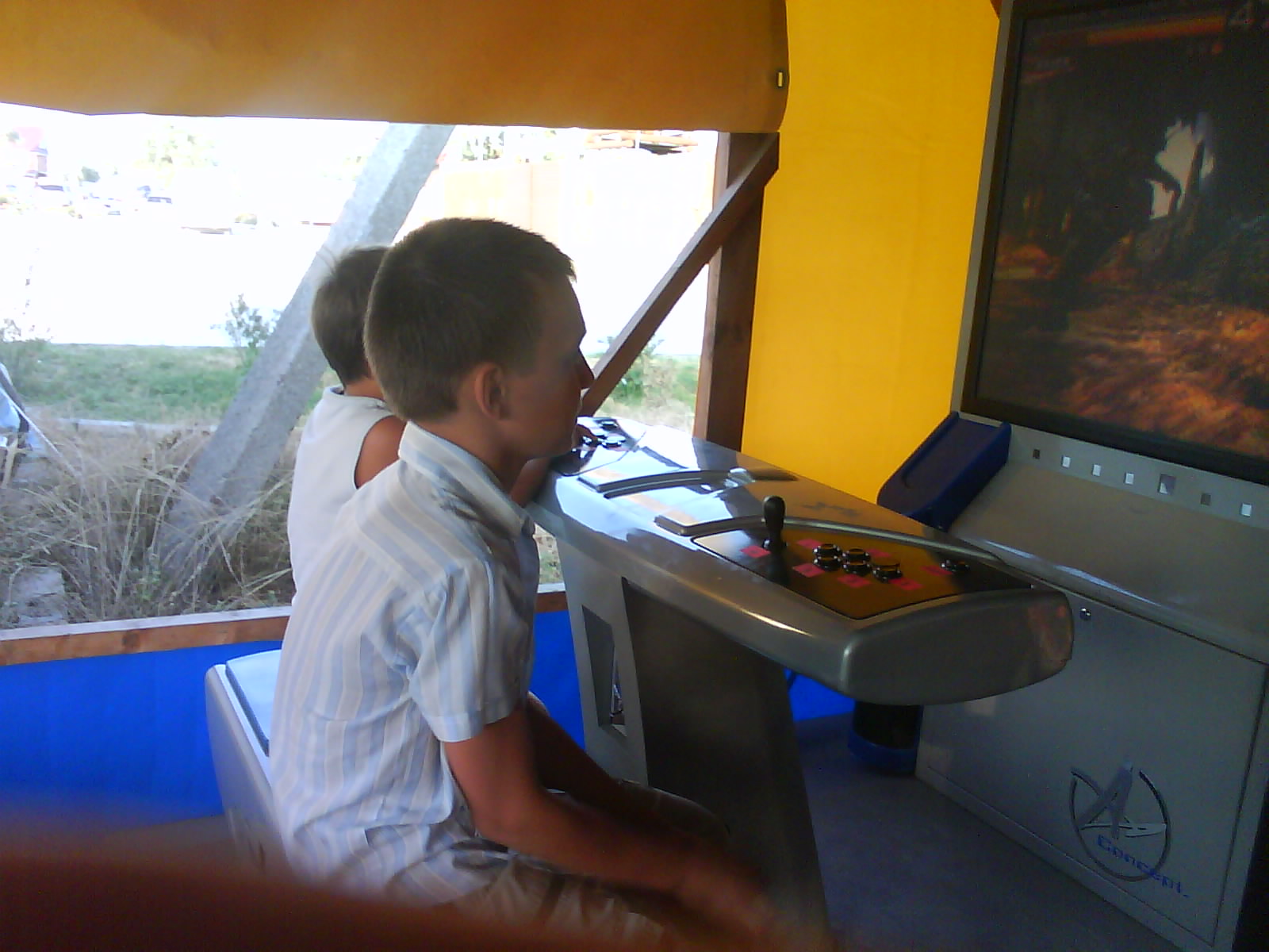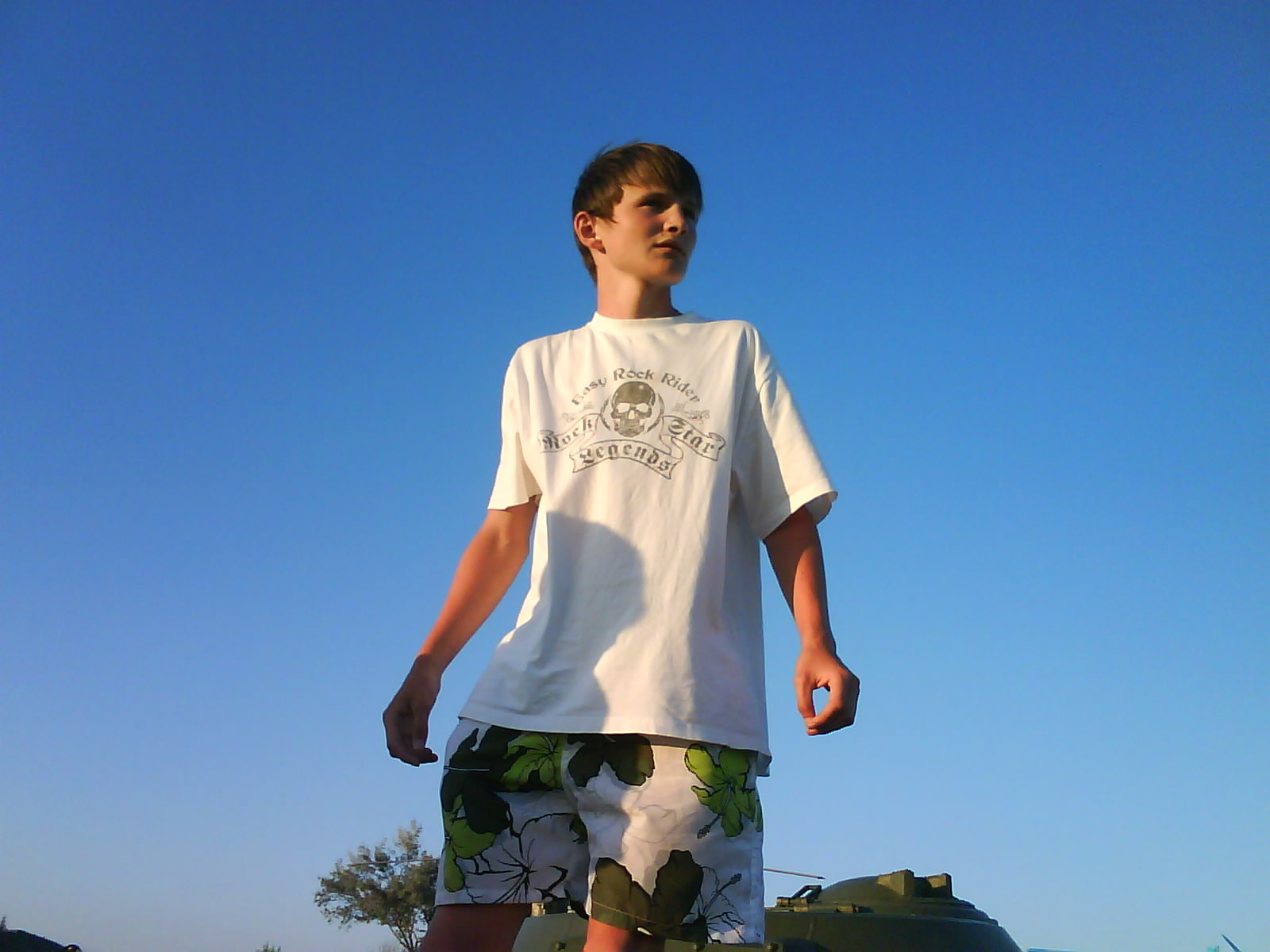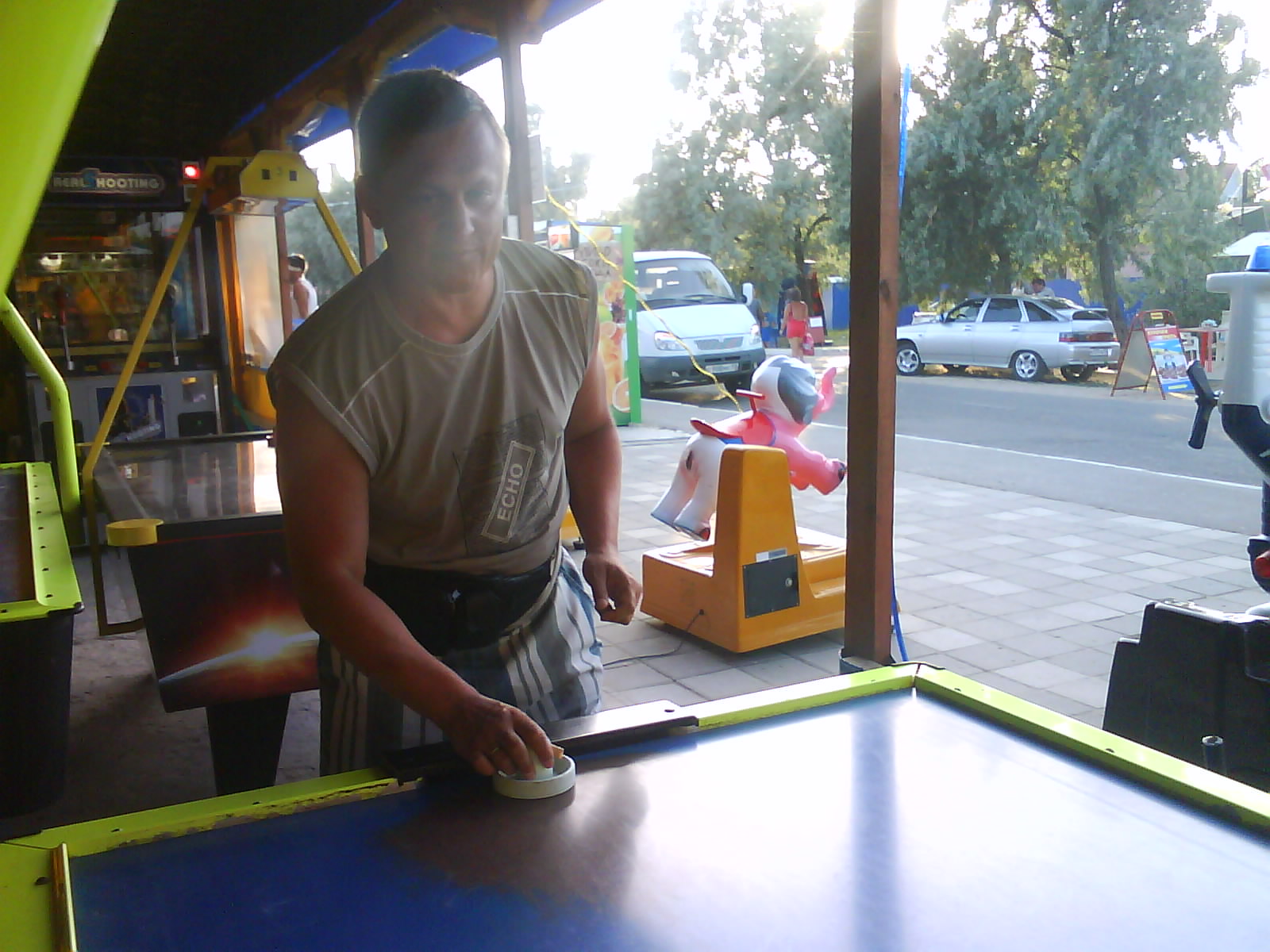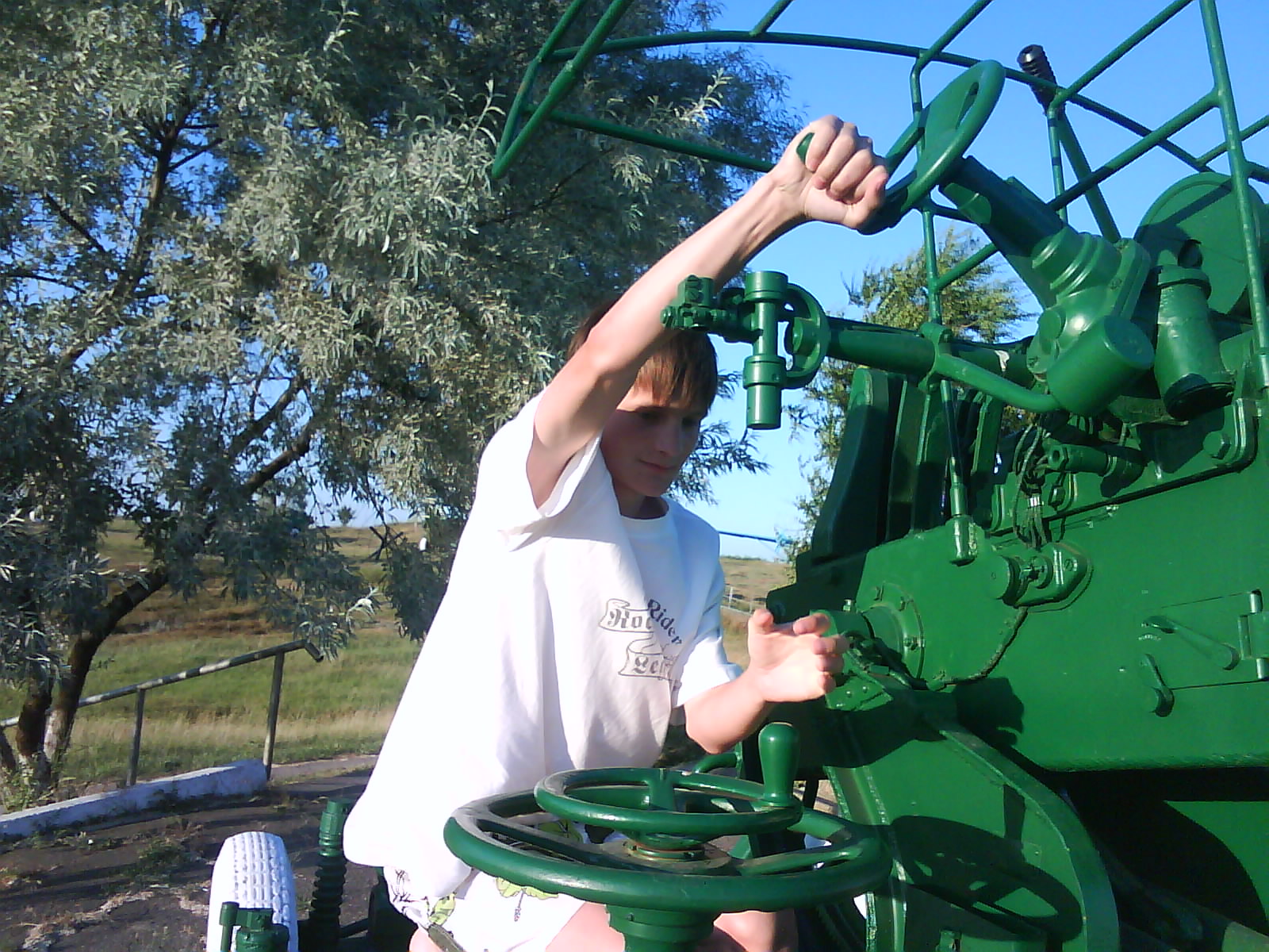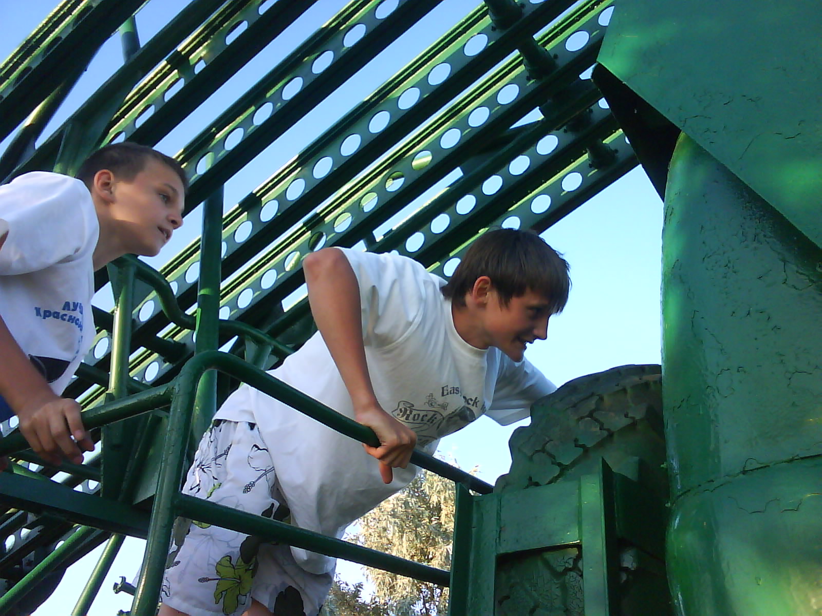 После ужина поехали на "Военную горку". Это такой музей военной техники под открытым небом, в Темрюке. Описывать не буду, есть куча фоток. Димка, подкалывая меня за толстопузую комплекцию, проиграл щелбан - не смог залезть на торпедный катер, а я залез. Потом то и он залез, но договор есть договор. Мамурля пыталась сфоткать значимое событие...неполучилось, к сожалению.