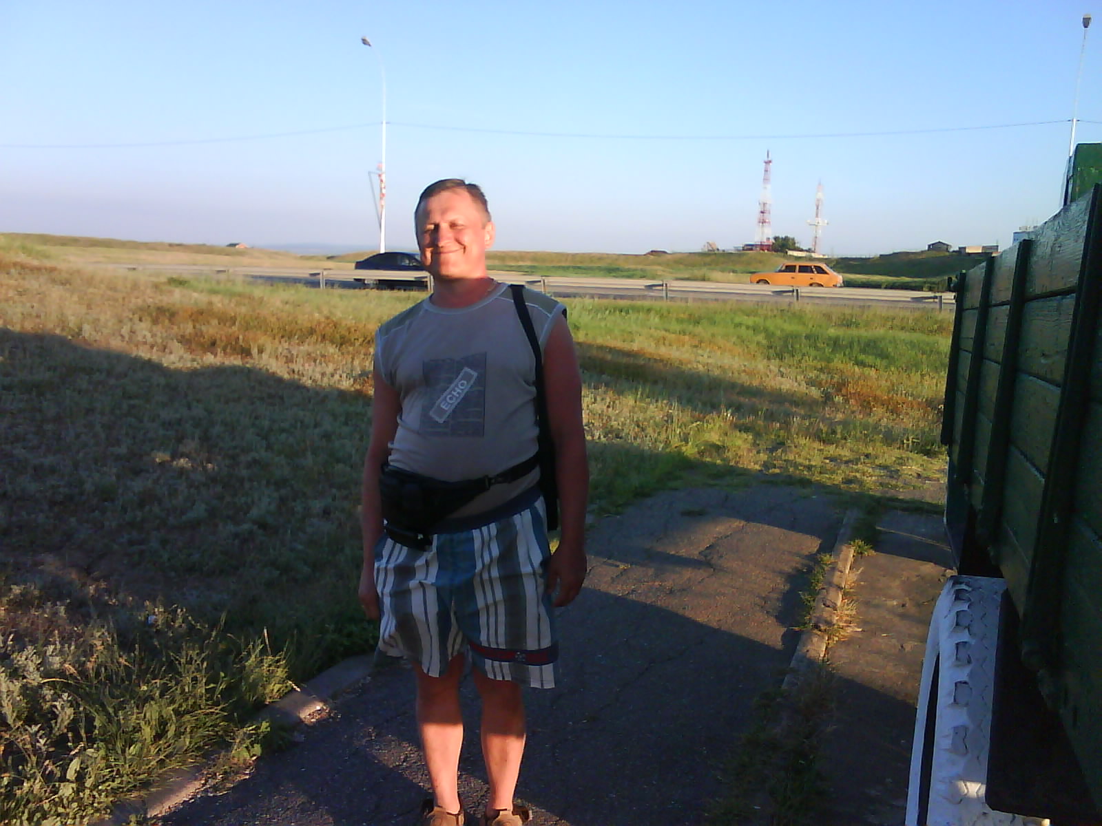Днем стало довольно жарко. Первую остановку сделали в районе 10-ти часов, за Воронежем. Заехали за посадку. Марина тут-же нашла "хорошее место"...на поверку оказавшееся полным срачем. Из термоса заварили бич-пакеты. Кстати, узнал нечто новое...оказывается есть еда хуже доширака...это белые коробочки, по форме - один в один "Доширак", но это "Ашановский" заказ...та-же тенденция прослеживалась и в картошке быстрого приготовления...правда за образец был "Ролтон".