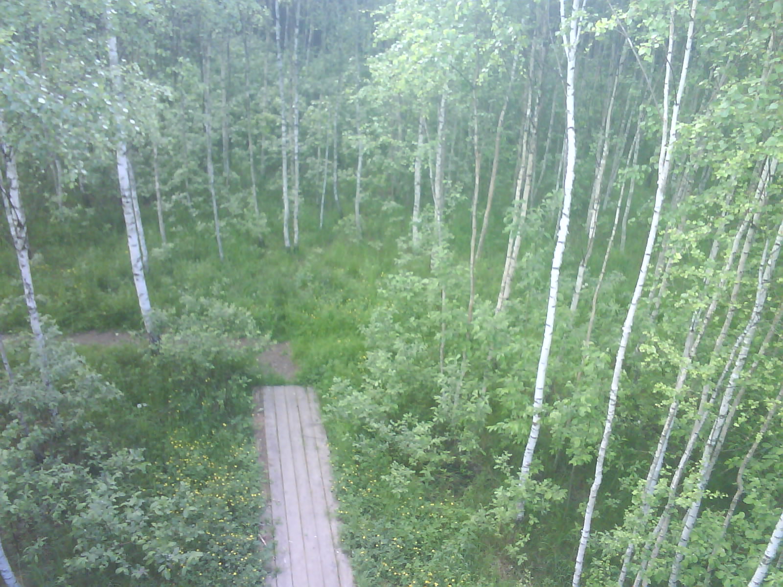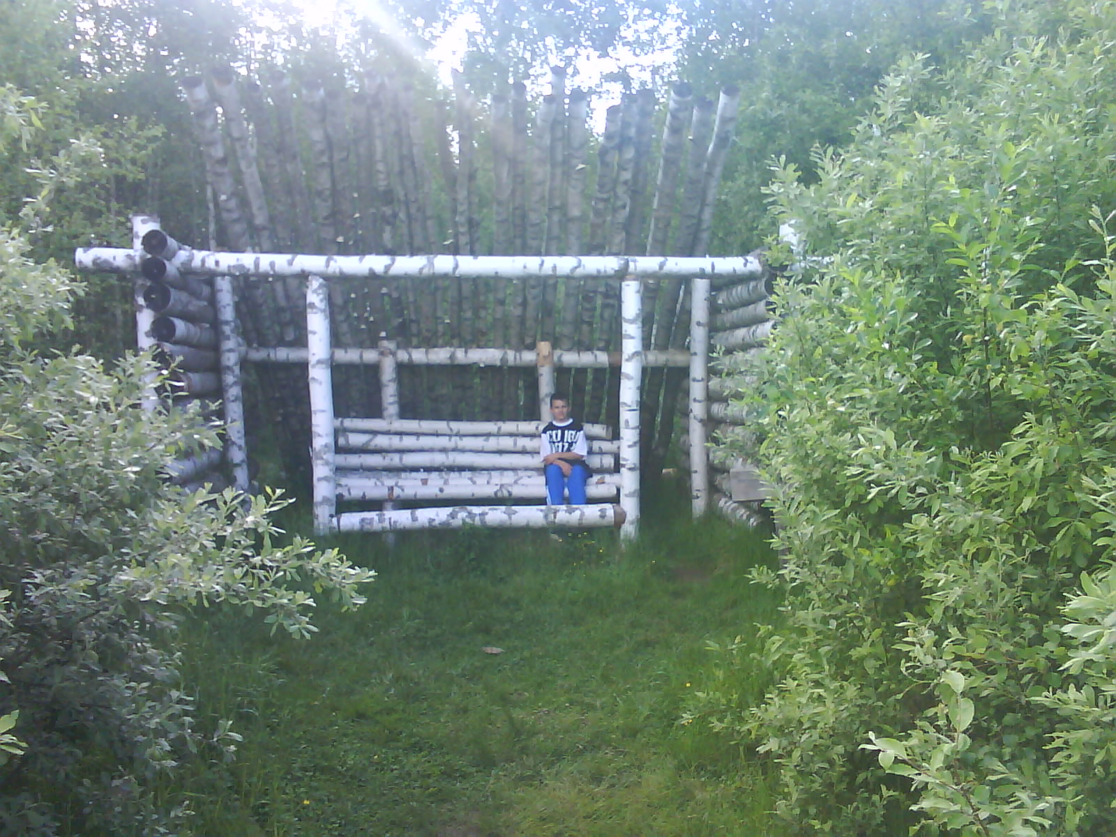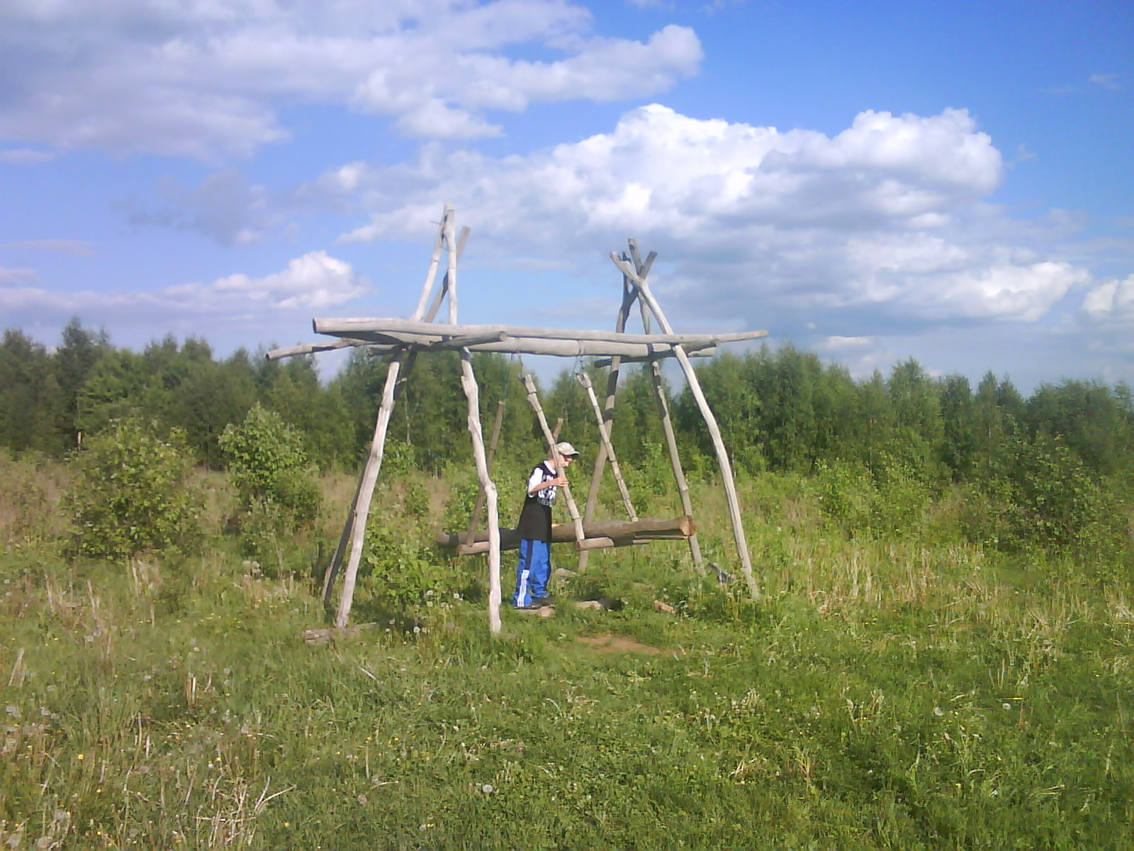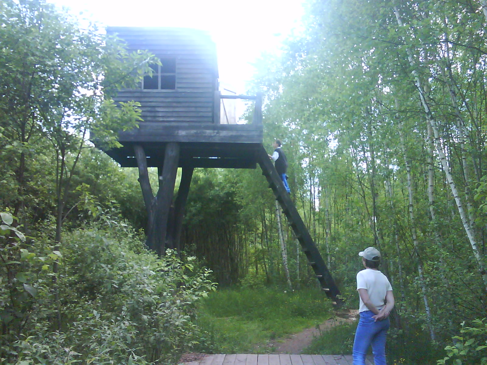 | Вот это какие-то непонятные сооружения - помосты сбитые вокруг березок.... Единственное разумное объяснения - это спальные места... в очень хорошую погоду... |