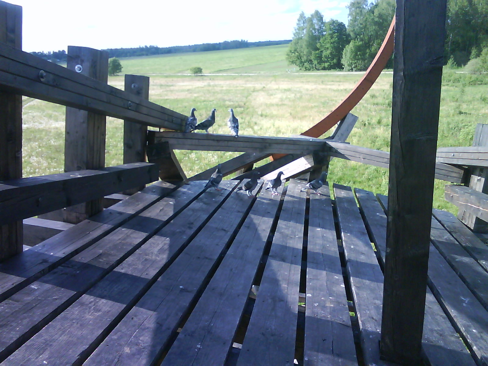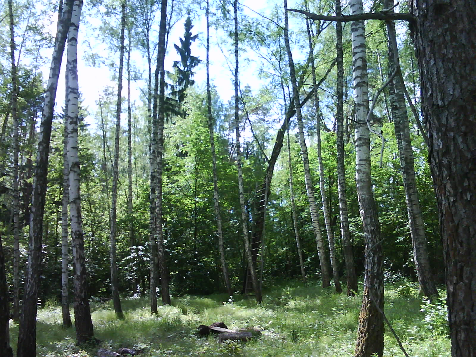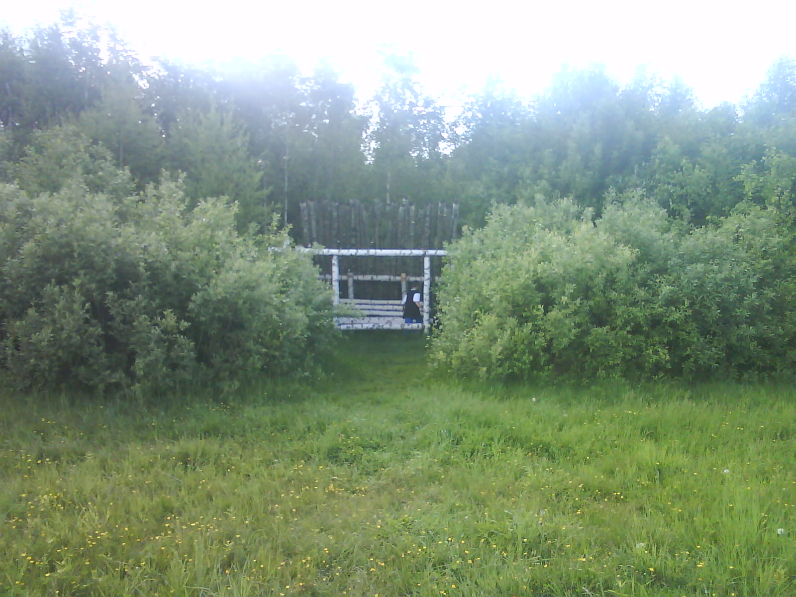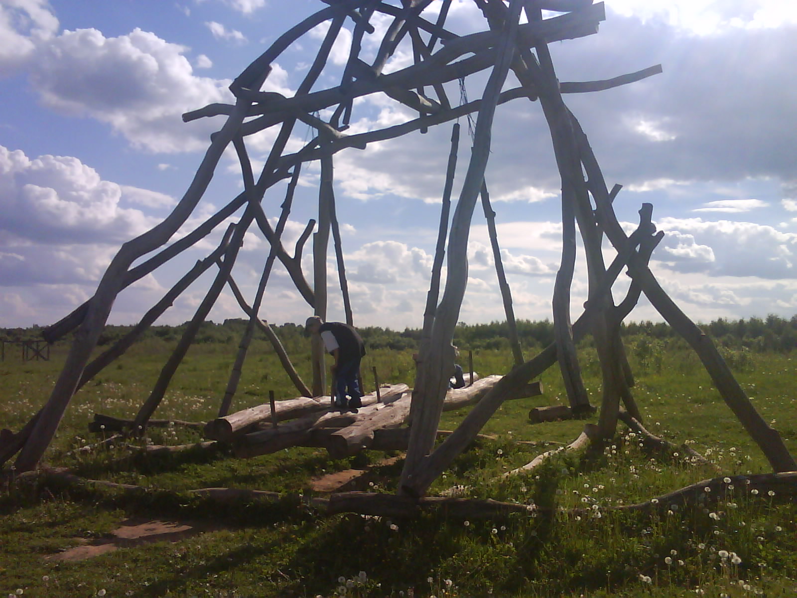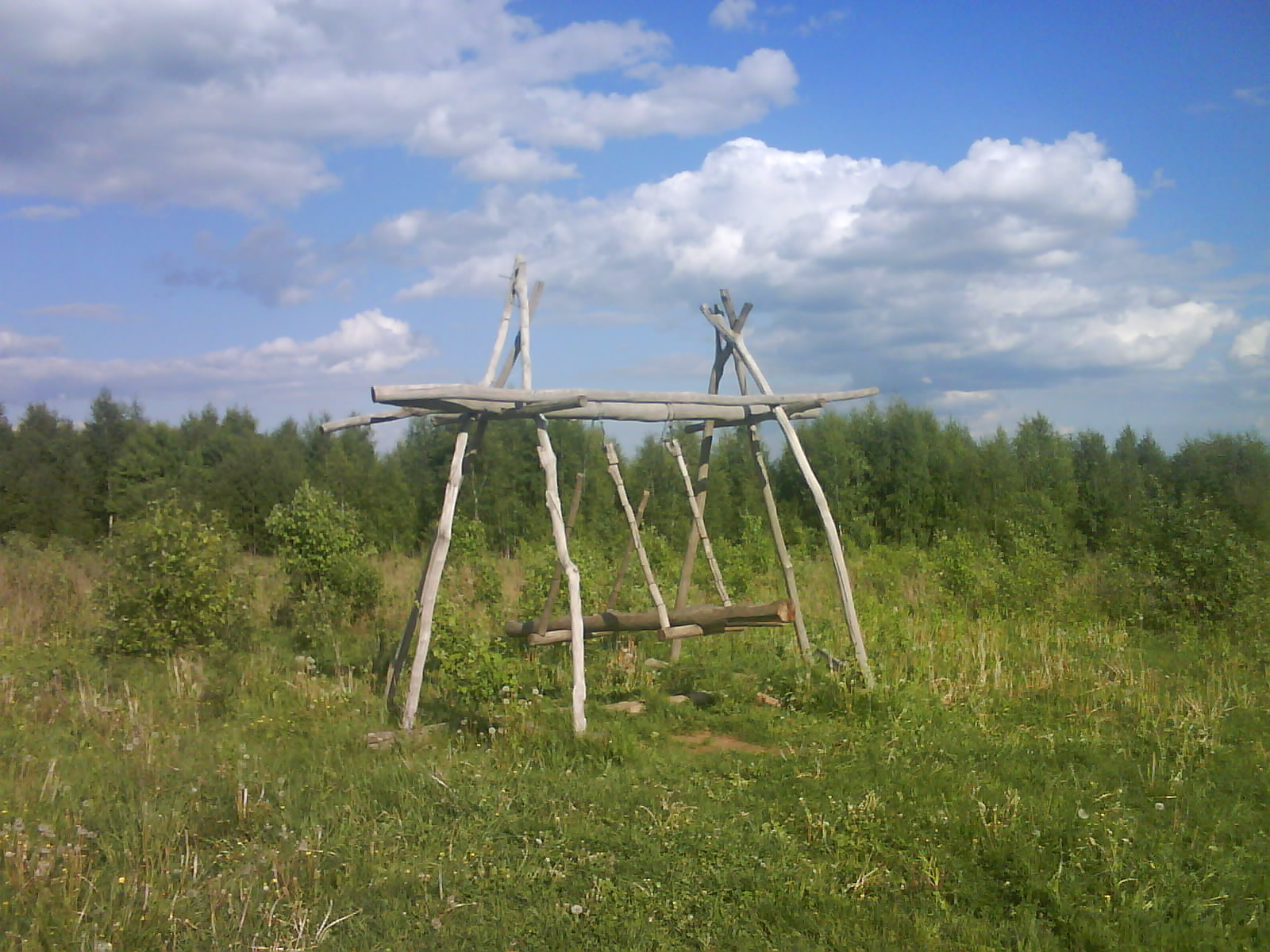 | Вот это какие-то непонятные сооружения - помосты сбитые вокруг березок.... Единственное разумное объяснения - это спальные места... в очень хорошую погоду... |