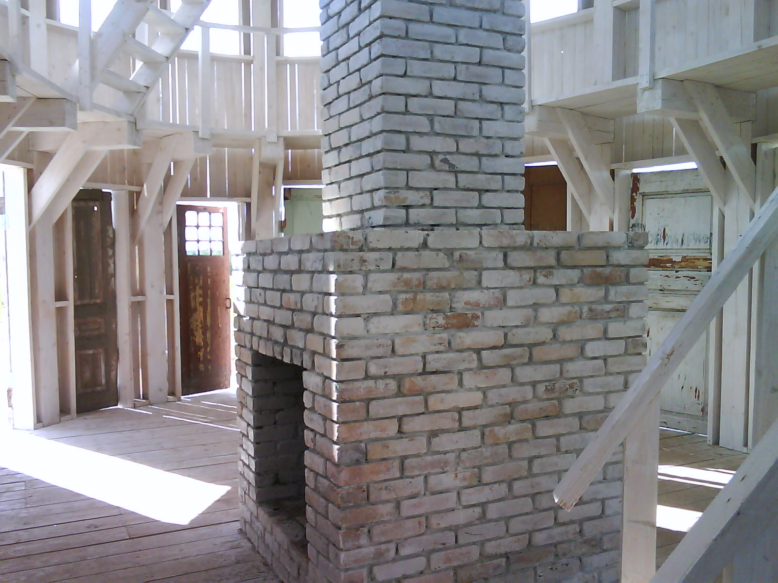 | Внутри большая печь.... или камин скорее всего (к стыду своему я не очень в этом разбираюсь).... Лесница на второй этаж..... Не совсем этаж, а широкая галлерея..... |