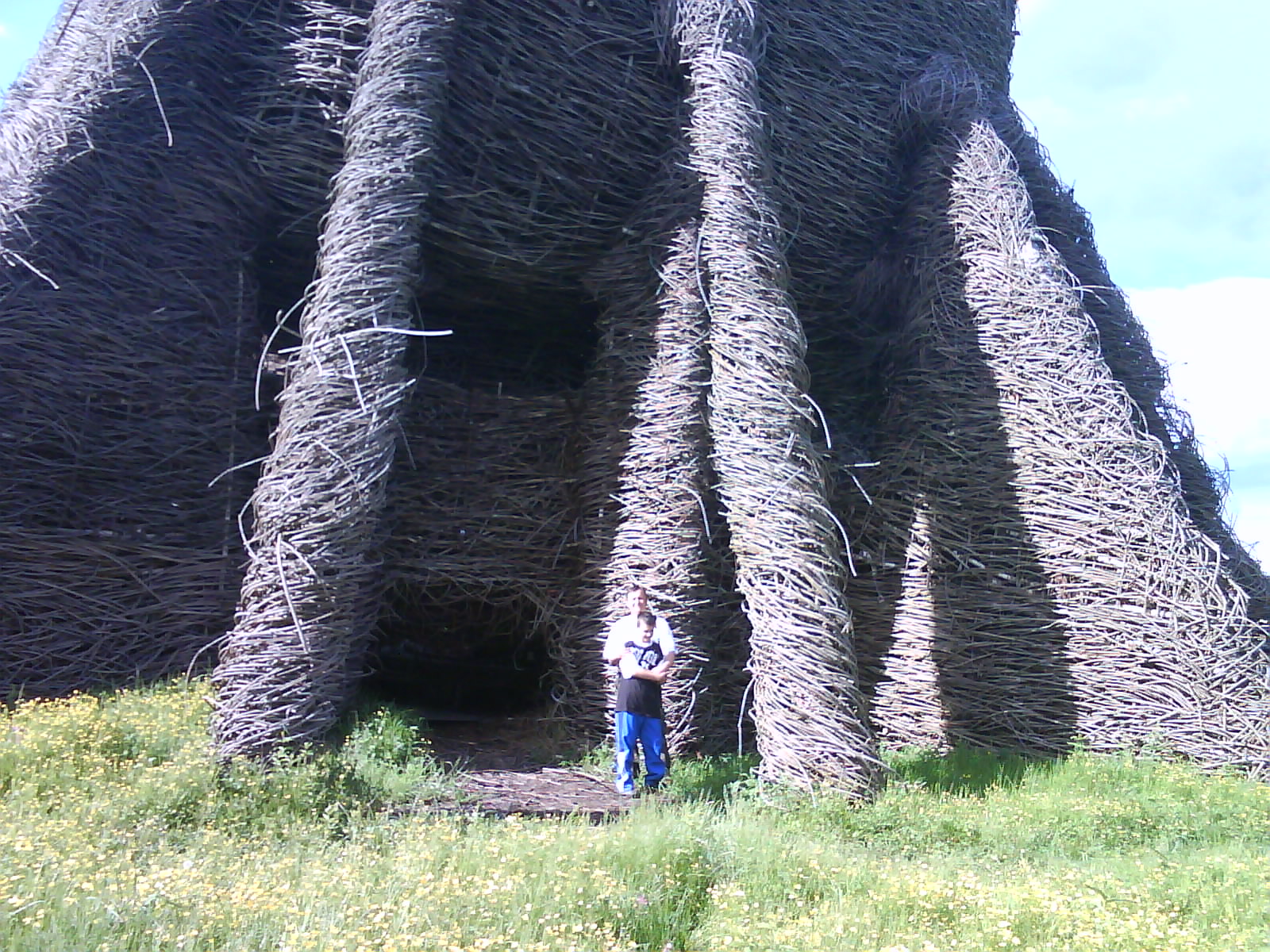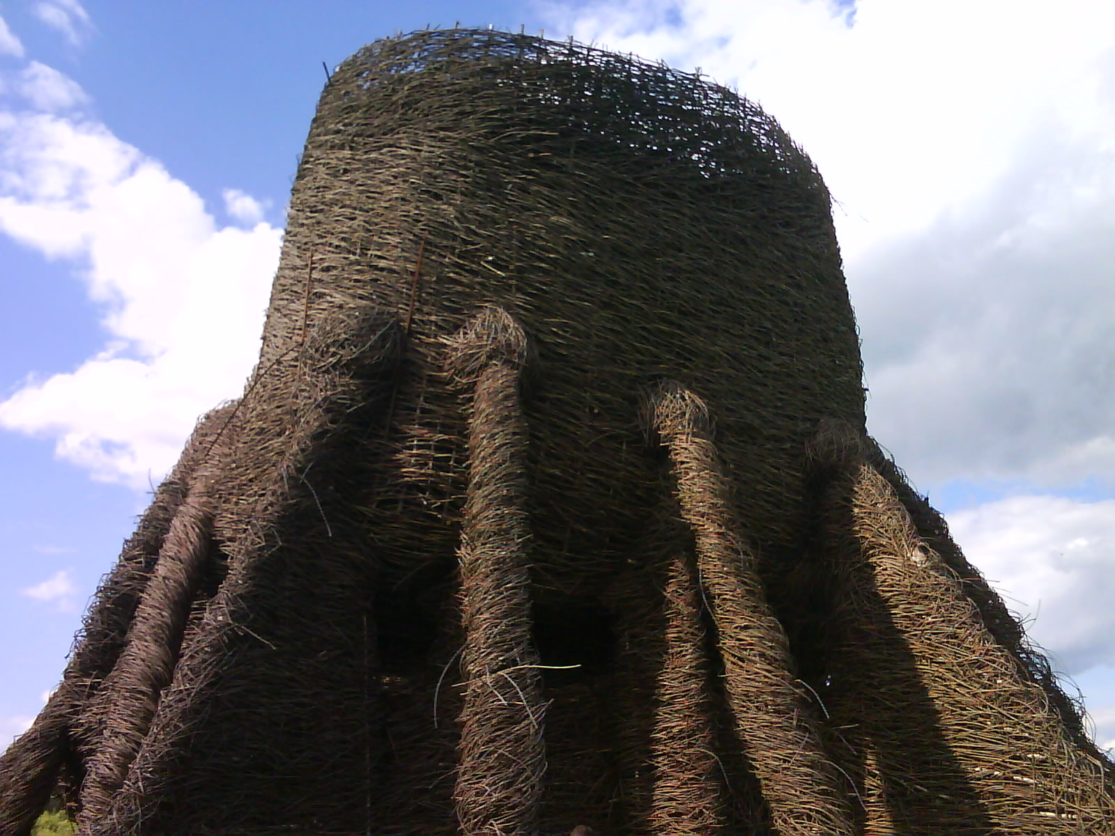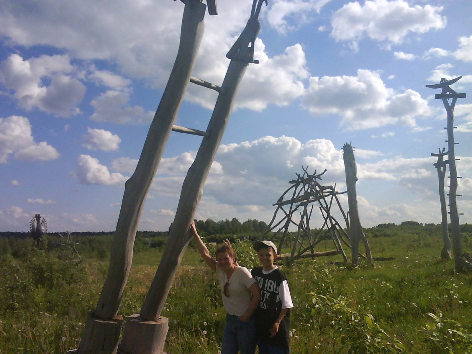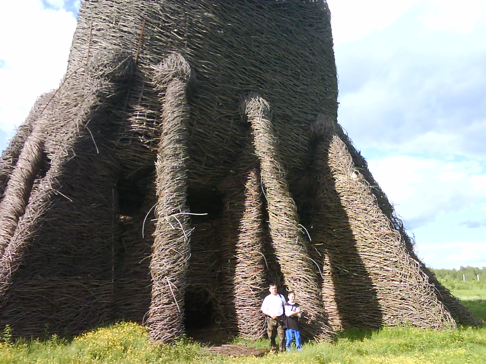 « ...С 2000 года деревня Николо-Ленивец стала известной благодаря возводимым здесь ландшафтным объектам известных мастеров архитектуры, которые органично вписываются в сельский пейзаж и удивляют гостей и приезжих. Прямо под открытым небом в живописном среднерусском ландшафте появляются диковинные творения художника. Особенность этих легендарных построек - использование естественных природных материалов: сена, дров, снега, шишек, дерева, и в строительстве каждого из них принимали участие местные жители деревни Николо – Ленивец. Некоторые объекты функциональны: плоты, качели, даже туалеты. Большинство объектов взаимодействуют со зрителем — в них можно зайти, залезть, прокатиться на них. Из года в год количество объектов прибавляется, а какие то «умирают своей естественной смертью». Впечатляют бесконечная армия снеговиков, «дровник» высотой с пятиэтажный дом, огнедышащий «Орел в огне», которого зажгли на Масленицу 2008, языки пламени были видны за 15 километров, он и сейчас стоит одиноко в поле, заставляя трепетать окружающих. Сарай в стенах которого просверлили 200 000 дырочек, теперь изнутри льется необыкновенный свет – будто в нём поселилось множество светлячков. Ещё одно из творений - это « Деревянное Ухо», высотой более 7 метров. В него можно залезть и наслаждаться дивным закатом, а ещё оно собирает все звуки природы и дает возможность сосредоточиться на созерцании окружающей красоты....» |