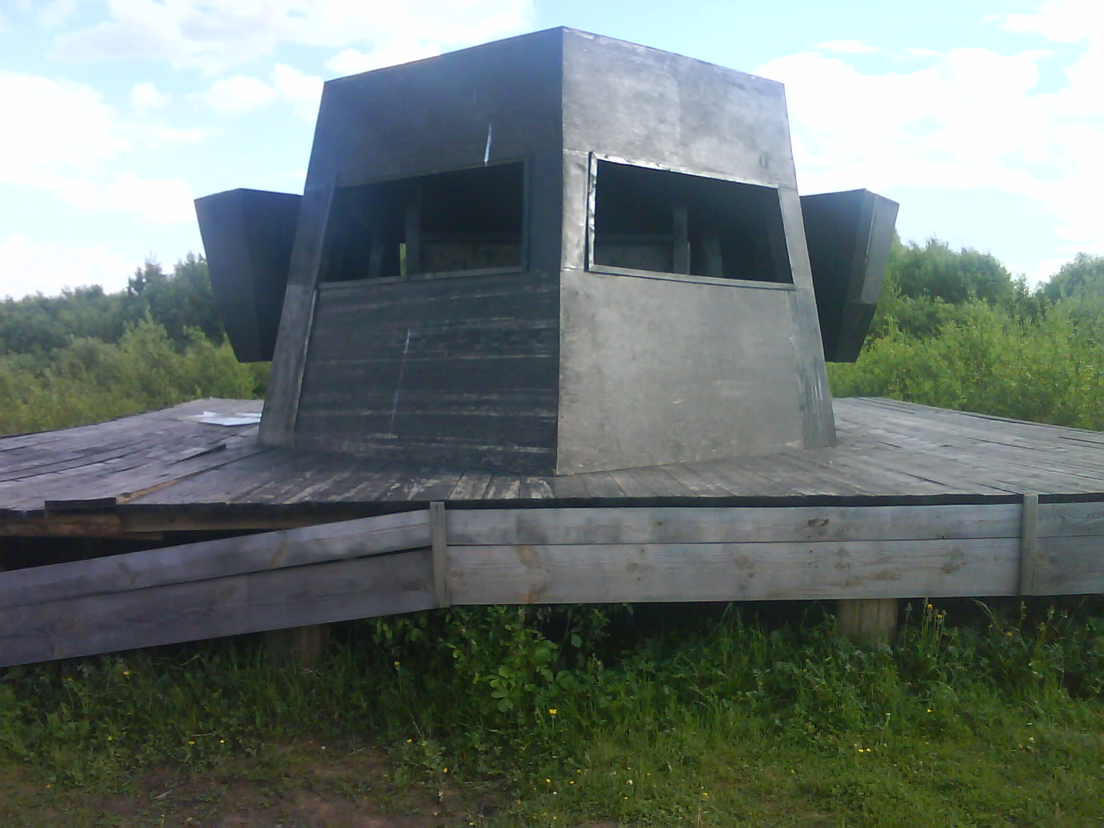 | От это сооружение легко узнать: деревянный домик, типа сортир. |