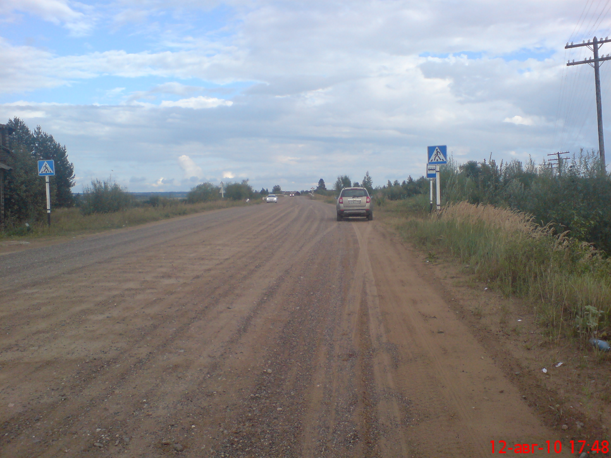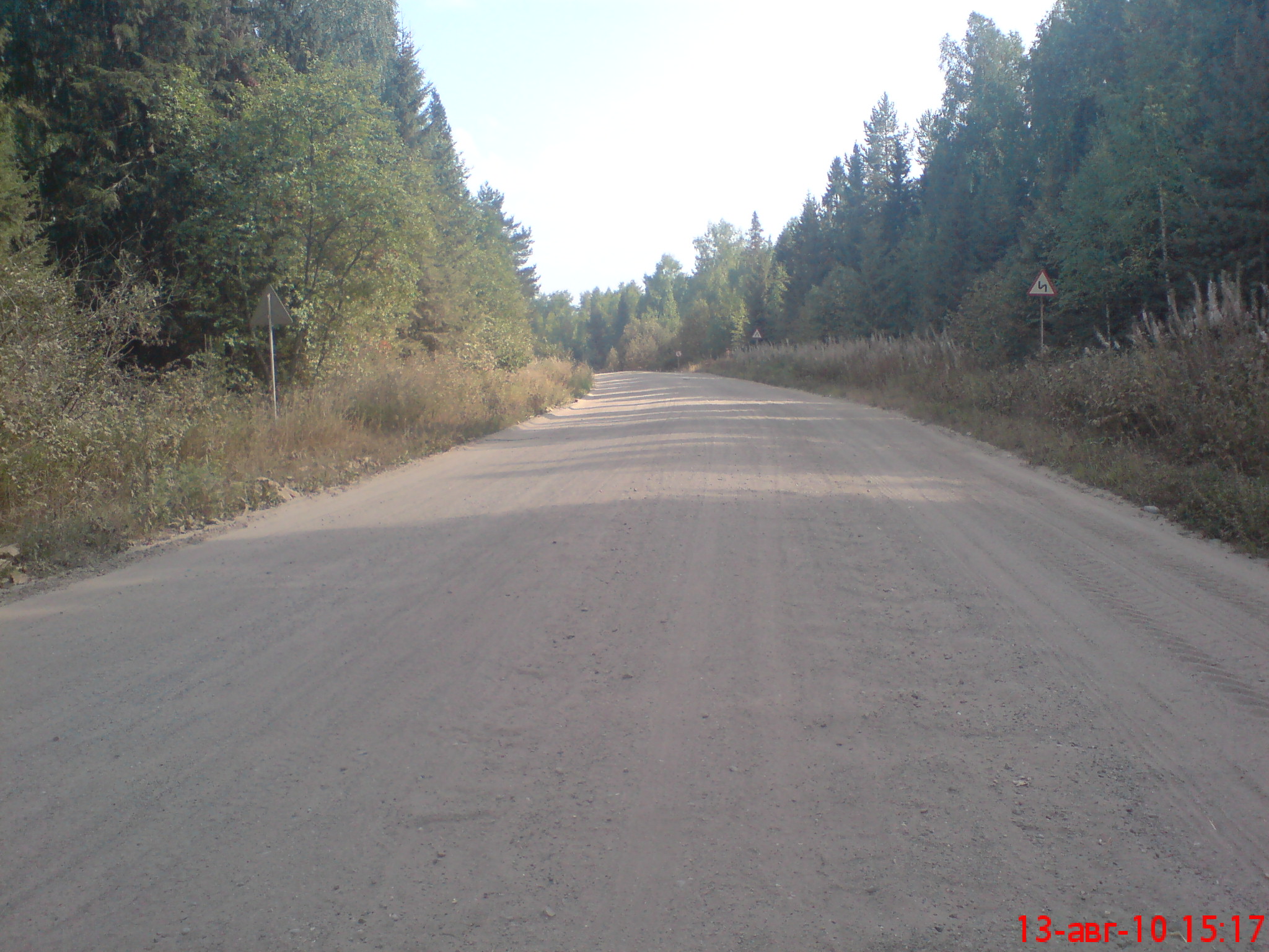 Проехали: 2201,6км. всего, (242,8км. на баке) Спать легли на "Вятке" в четвертом часу ночи. До Кирова - более 300км. Дорога Котлас - Коряжма - Ильинско-Подомское - Широкий Прилук такая же убитая как и дорога с "Холмогоров"(М8) до Котласа. Старт в 8ч.00м. За бортом +13С. Ого, это еще холодней чем в Архангельске. |
