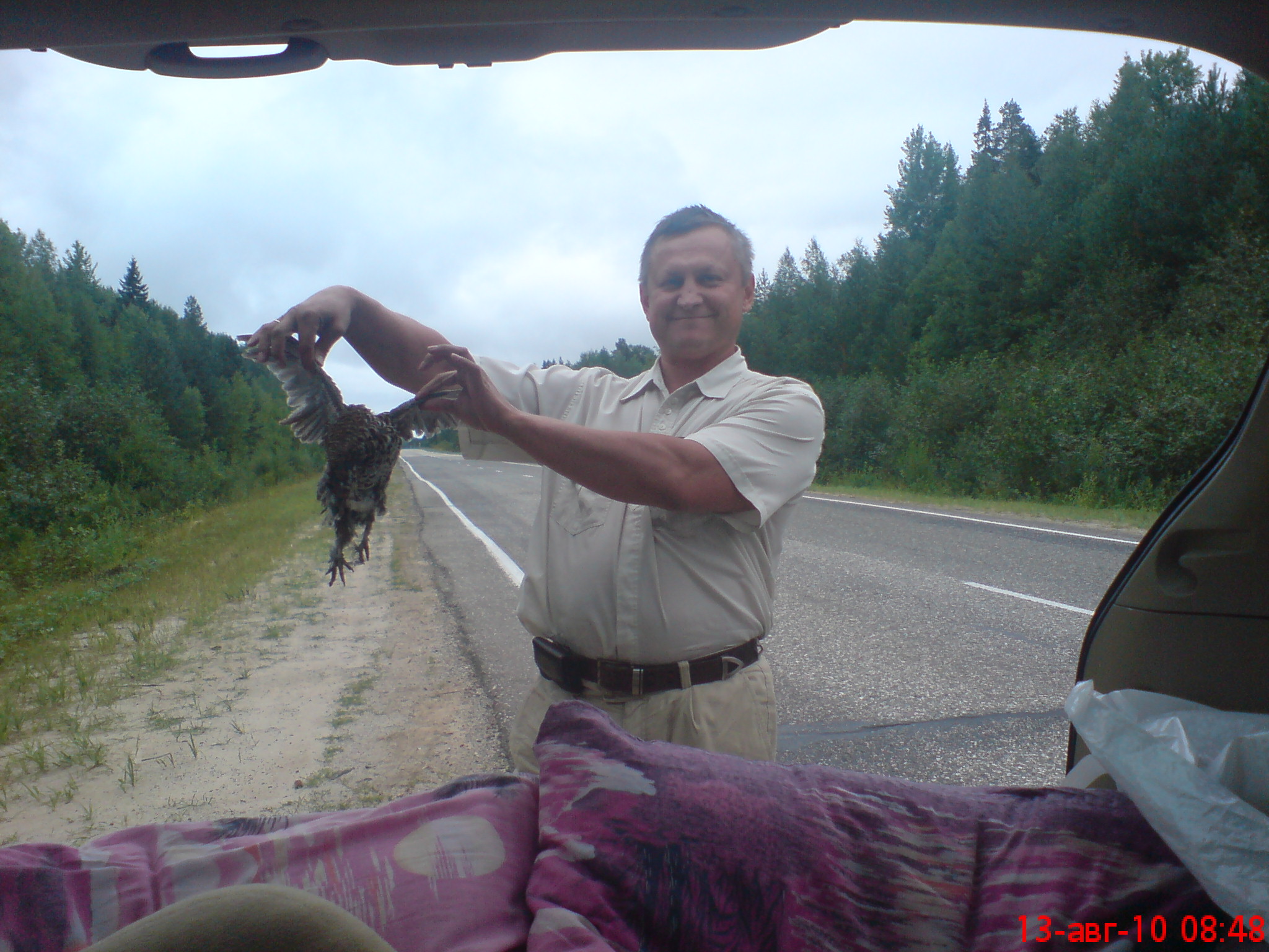 | Впереди ехала машина-буханка, под колеса метнулась куропатка. Короче, дорожное пороишествие со смертельным исходом. Был бы холодильник - забрали бы в Москву. |
