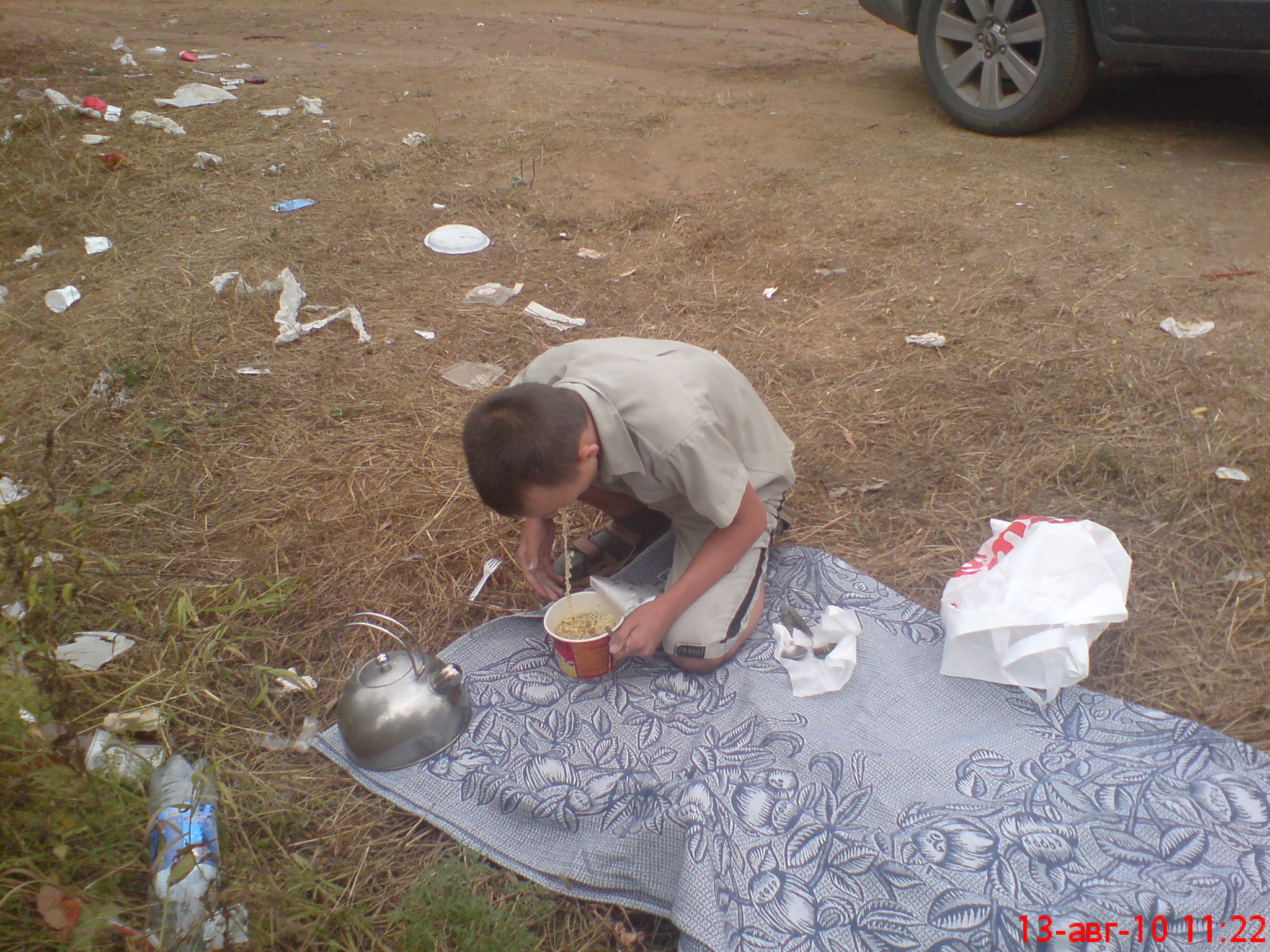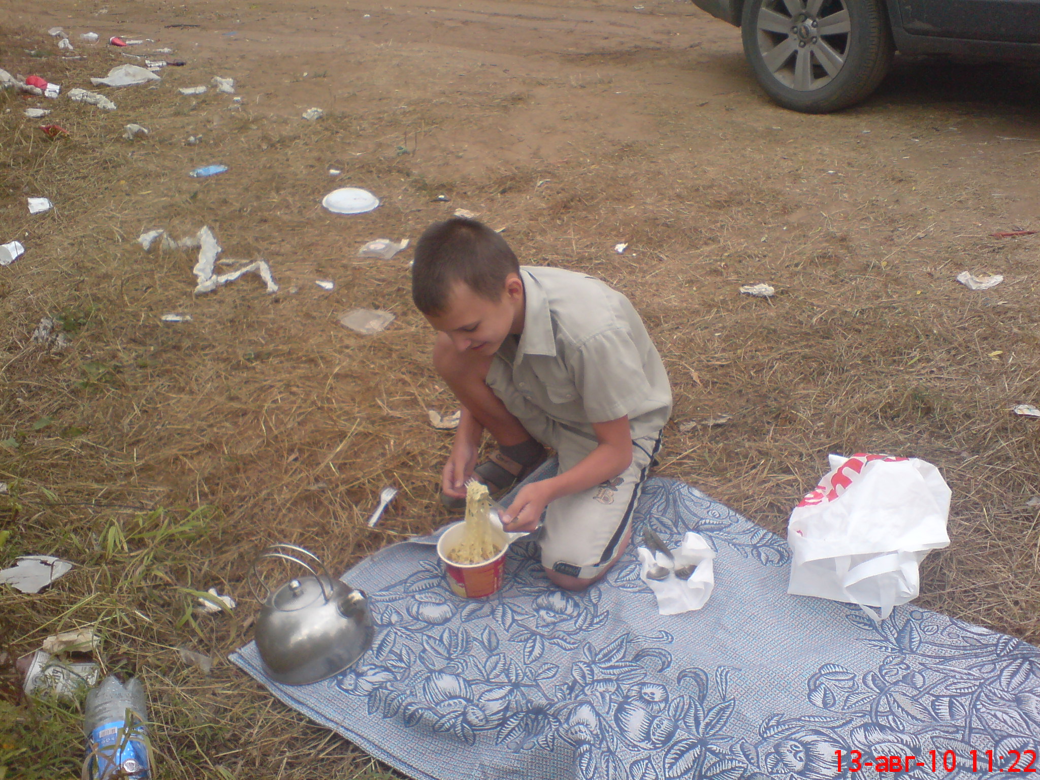 Заправка елецкнефтепродукт: 50,01л по 24,50р=1225,25р. Проехали: 2455,4км. всего, (496,6км. на баке) Киров, река Вятка. Завтракаем. Никитко давясь и обжигаясь мечет доширак. Оголодало дитятко... Еще бы, вчера не ужинали. Едем на Кирово-Чепец, Глазов |